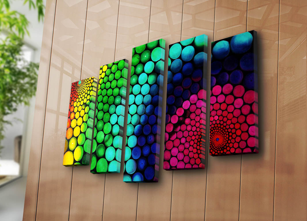 Este não é apenas um quadro – é uma declaração de estilo. A combinação única de cores multicolor e a disposição harmoniosa das 5 peças criam um ponto focal magnético que transforma instantaneamente qualquer ambiente.