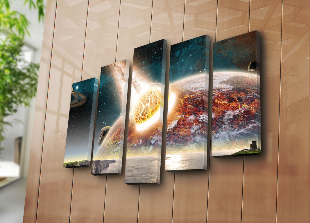 Quadro Decorativo em Tela Multicolor (5 Peças) — 70 x 105 cm, Tela Suede 100%, Moldura de Madeira 3 cm | 5PATK-112