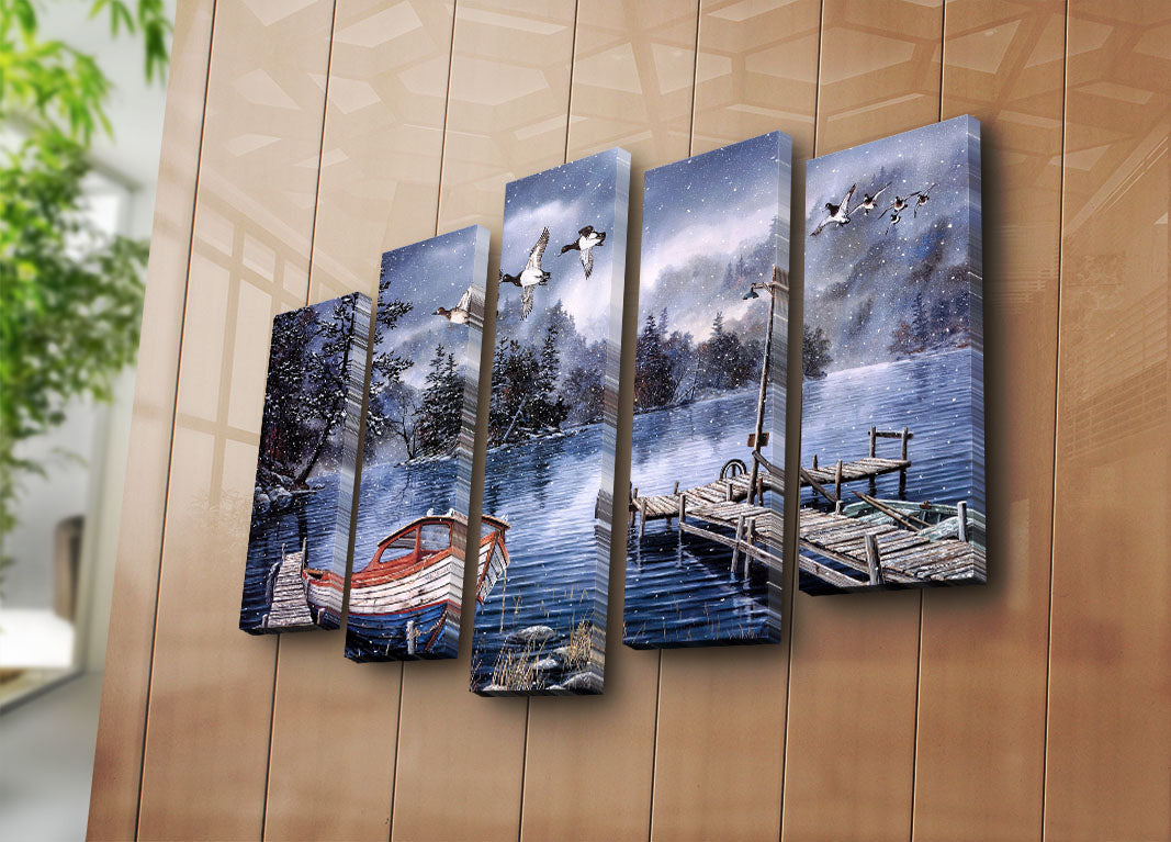 Conjunto de Telas Decorativas Multicolor (5 Peças) — 70x105 cm, Tela 100% Camurça, Moldura de Madeira 3 cm