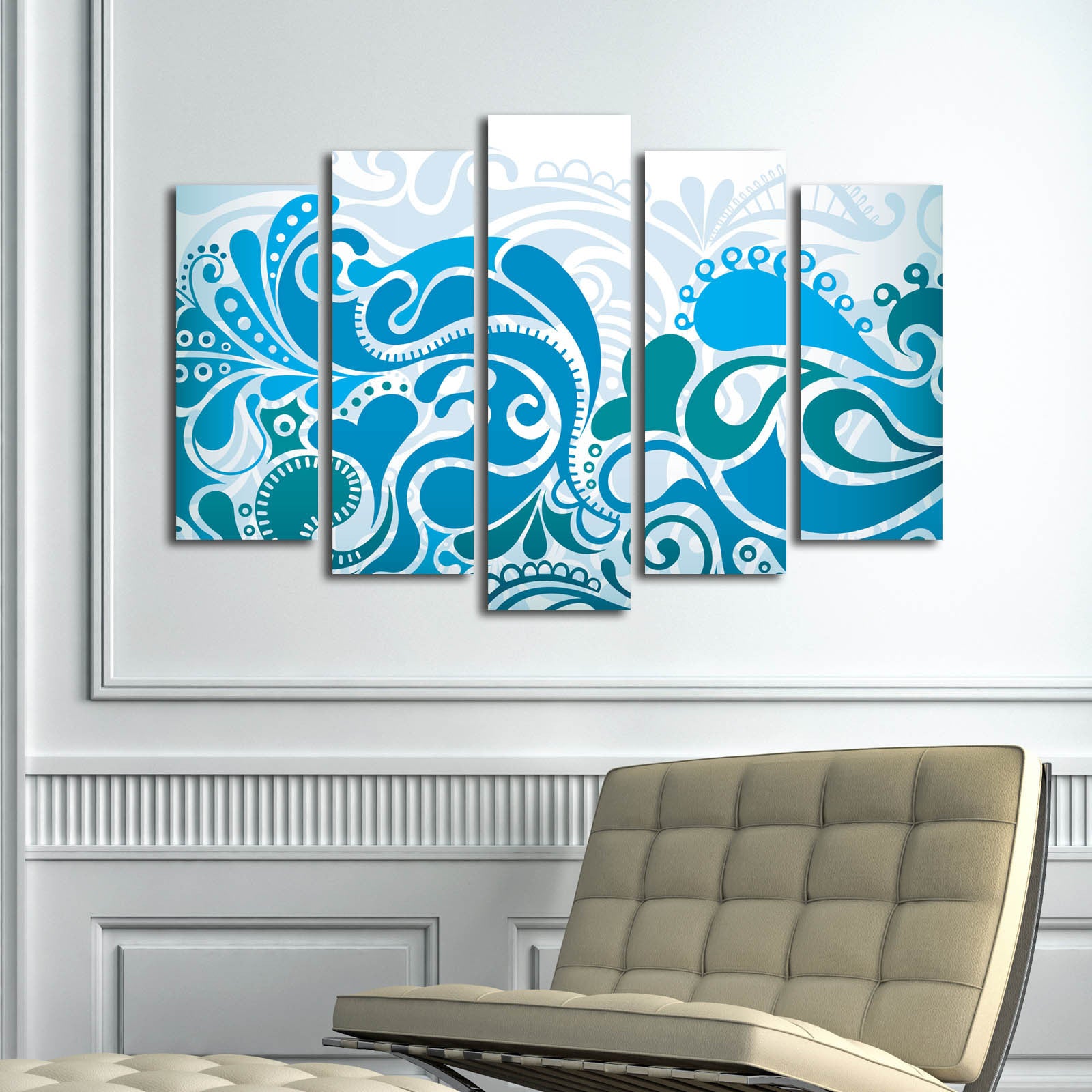 Seja na sala de estar, quarto, escritório ou hall de entrada, este conjunto decorativo transforma instantaneamente qualquer parede numa galeria de arte moderna. A disposição estratégica das 5 peças cria um efeito visual dinâmico e sofisticado.