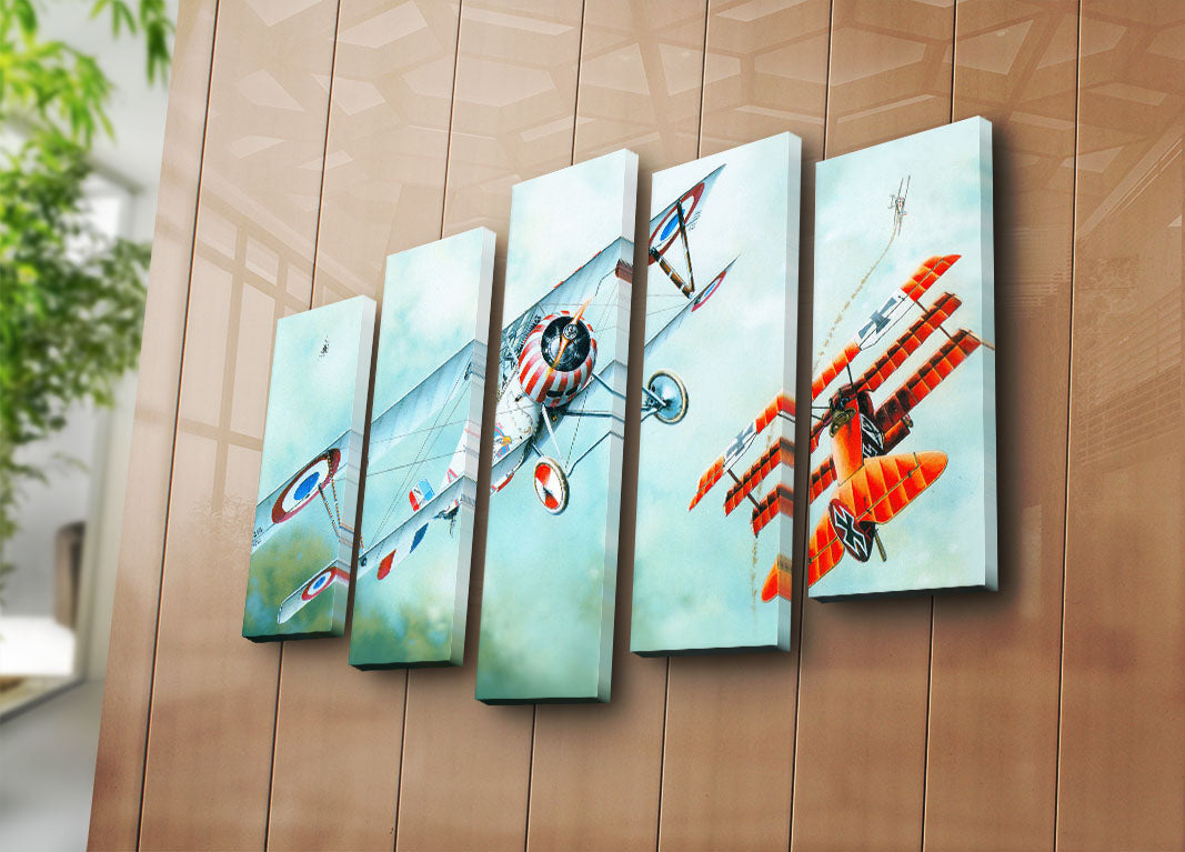 Quadro Decorativo Multicolor em Tela Suede (5 Peças) — Moldura 100% Madeira, Tamanho Total 70 x 105 cm