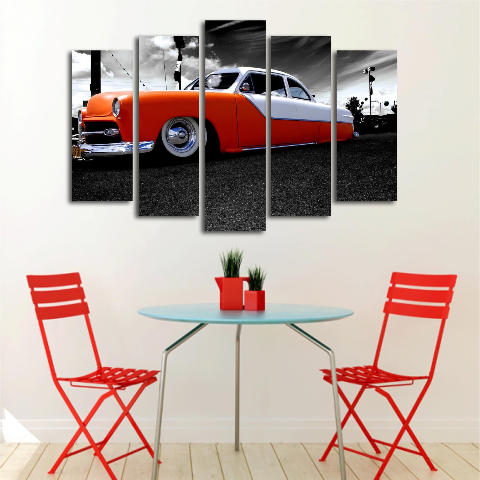 Quadro Decorativo em Tela (5 Peças) Multicolorido – Suede 100%, Moldura de Madeira 3 cm, 70 x 105 cm