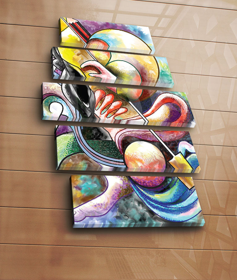 Quadro Decorativo Multicor em Tela Suede (Conjunto de 5 Peças) — Moldura 100% Madeira, 70 x 105 cm