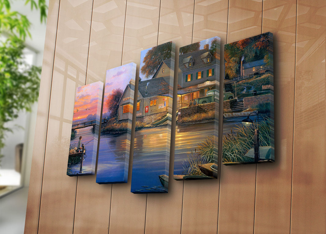 Impacto Visual Imediato: A disposição em 5 peças cria profundidade e movimento, transformando qualquer parede numa galeria de arte personalizada.