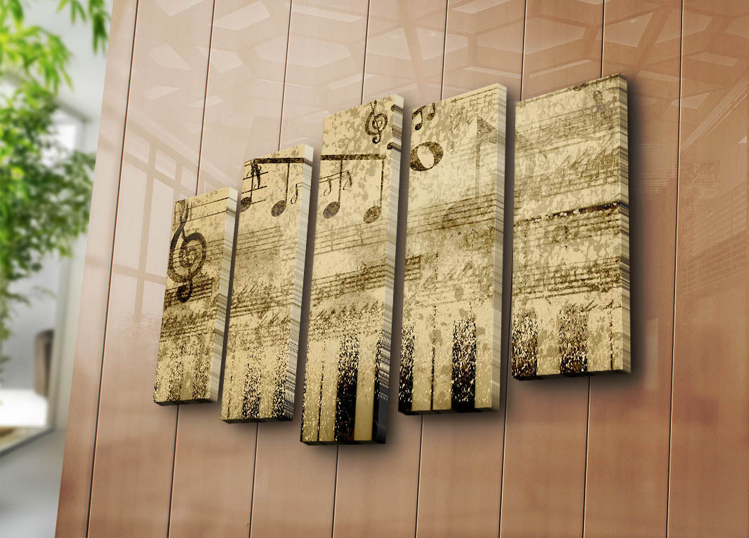 Quadro Decorativo em Tela (5 Peças) Multicolor 70x105 cm | 100% Suede Canvas, Moldura 100% Madeira 3 cm – 5PATK-192