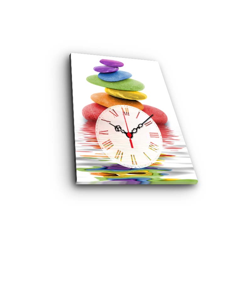 Relógio de Parede Decorativo em Tela Suede Multicolor 28 x 38 cm, Moldura de Madeira 3 cm