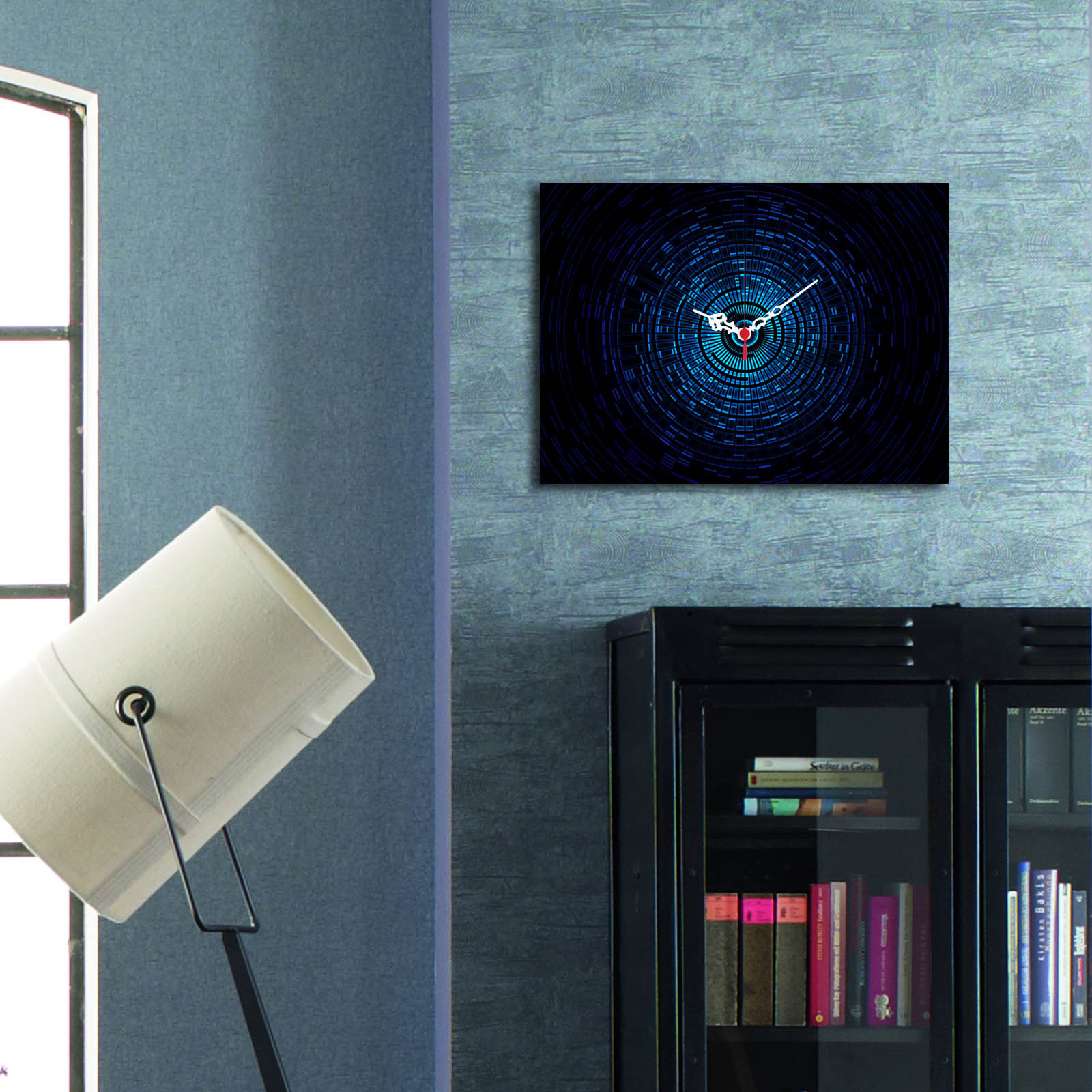 Este magnífico relógio de parede combina na perfeição o design contemporâneo com a qualidade superior dos materiais. A sua tela 100% suede multicolor cria um ponto focal deslumbrante em qualquer divisão, enquanto a robusta moldura de madeira de 3 cm de espessura garante durabilidade e sofisticação.
