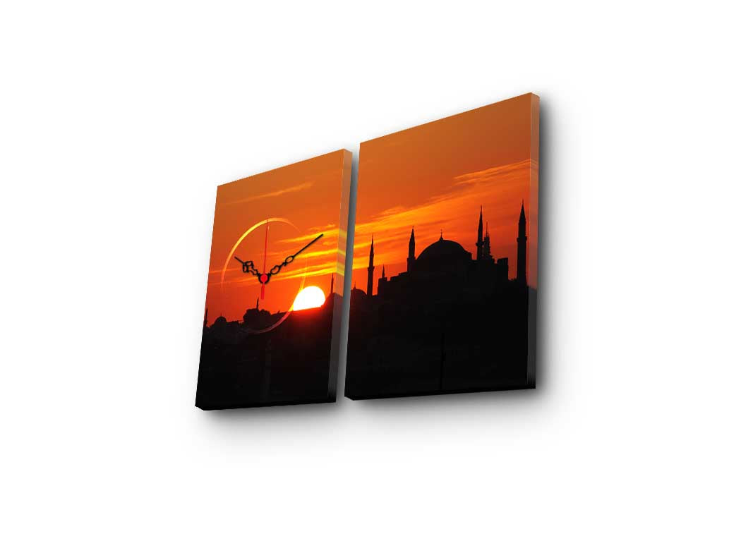 Relógio de Parede em Tela Decorativa Multicolor - Conjunto 2 Peças