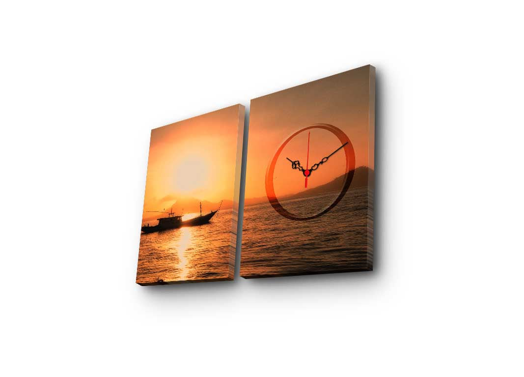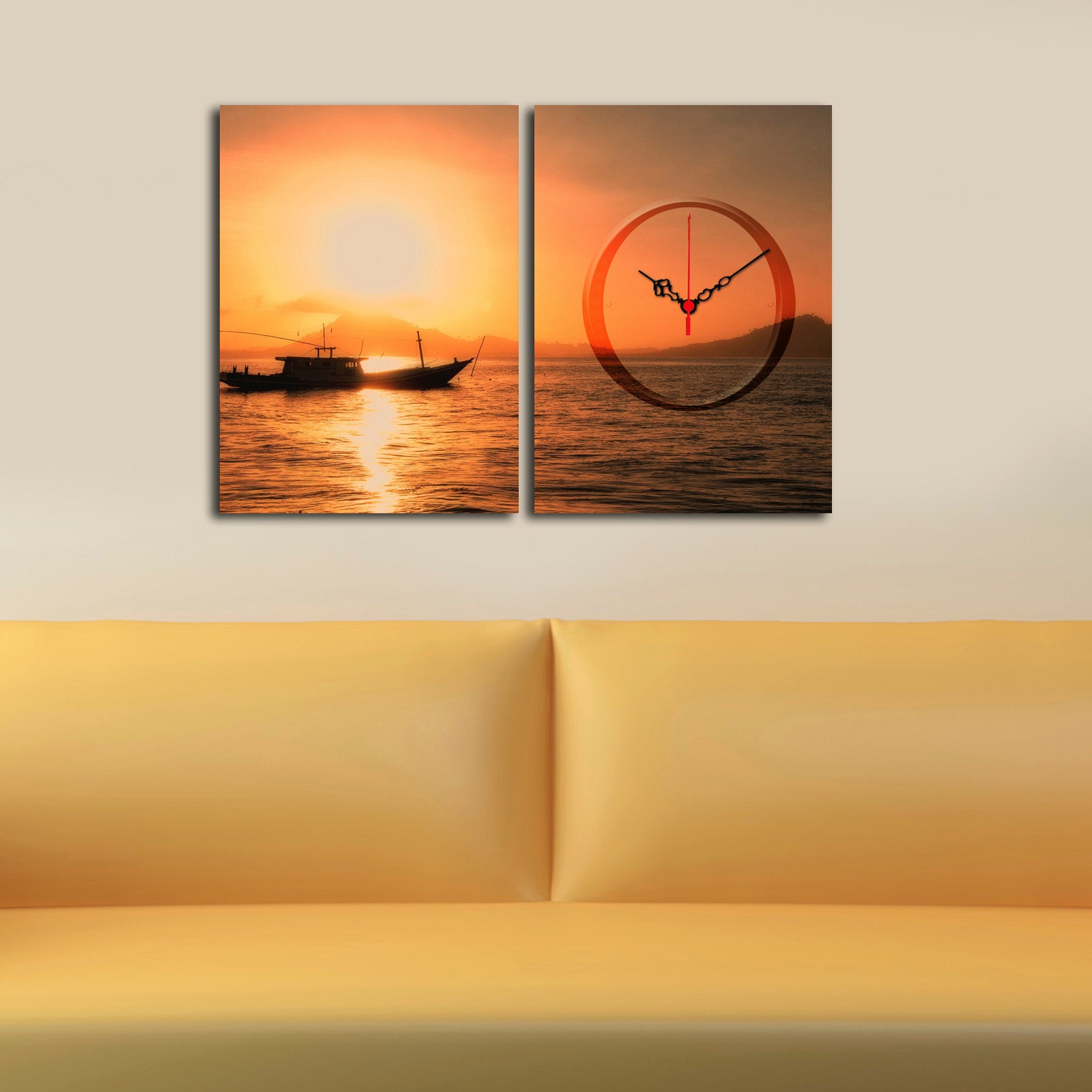 Relógio de Parede em Tela Suede (2 Peças) Multicolor — 60x38 cm, Moldura de Madeira 3 cm