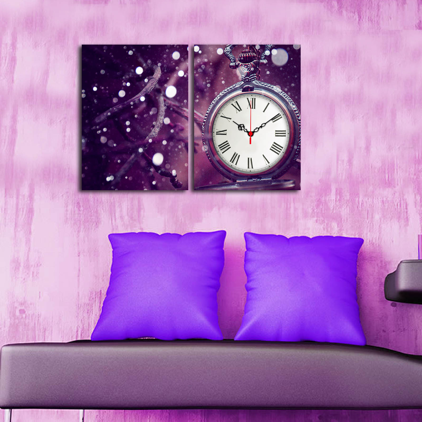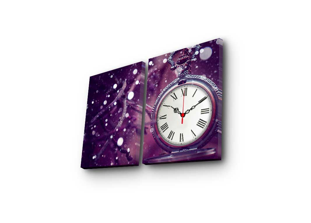 Relógio de Parede em Tela Decorativa (Conjunto de 2), Multicolorido, Tela Suede, Moldura de Madeira 3 cm, 60x38 cm — 2P3040CS-144