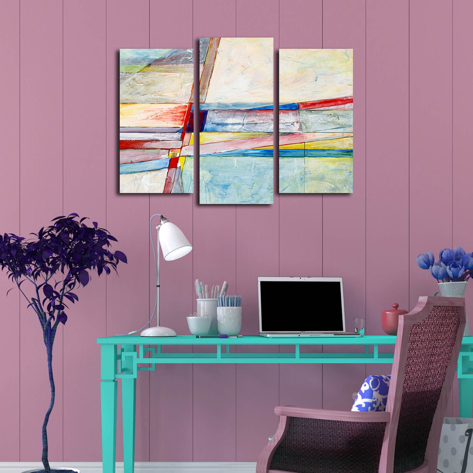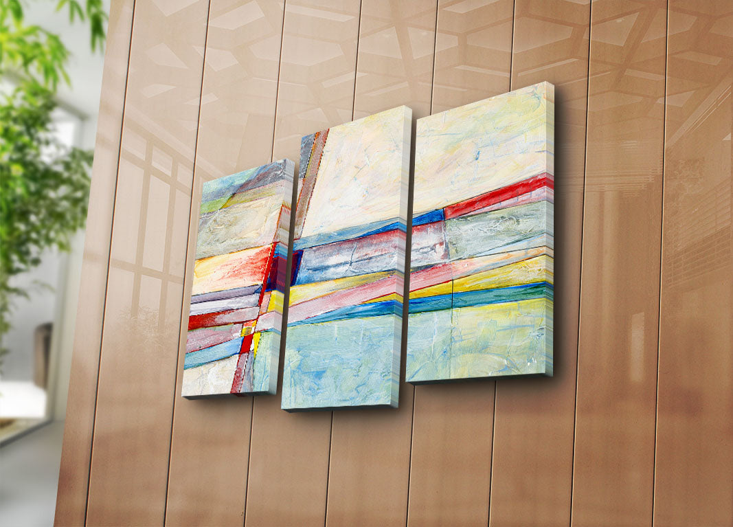Tríptico em Tela Suede 100% – Multicolor, Moldura de Madeira, 66 x 45 cm