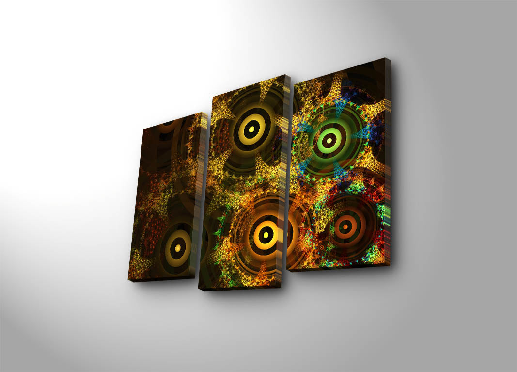 Quadros Decorativos em Tela Suede Multicolor (3 Peças) com Moldura de Madeira – 3PATK-109