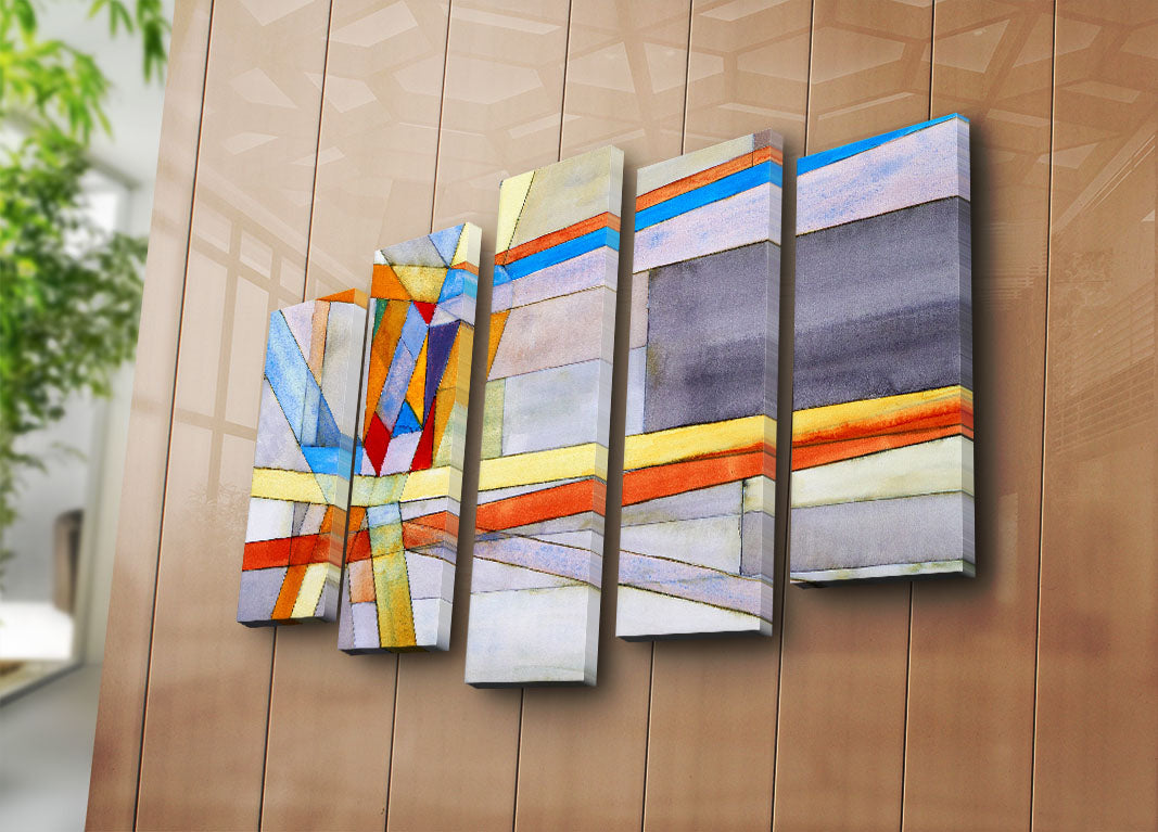 Quadro Decorativo 5 Peças em Tela Suede 100%, Multicolor, Moldura de Madeira 3 cm, 105 x 70 cm (5PATK-208)