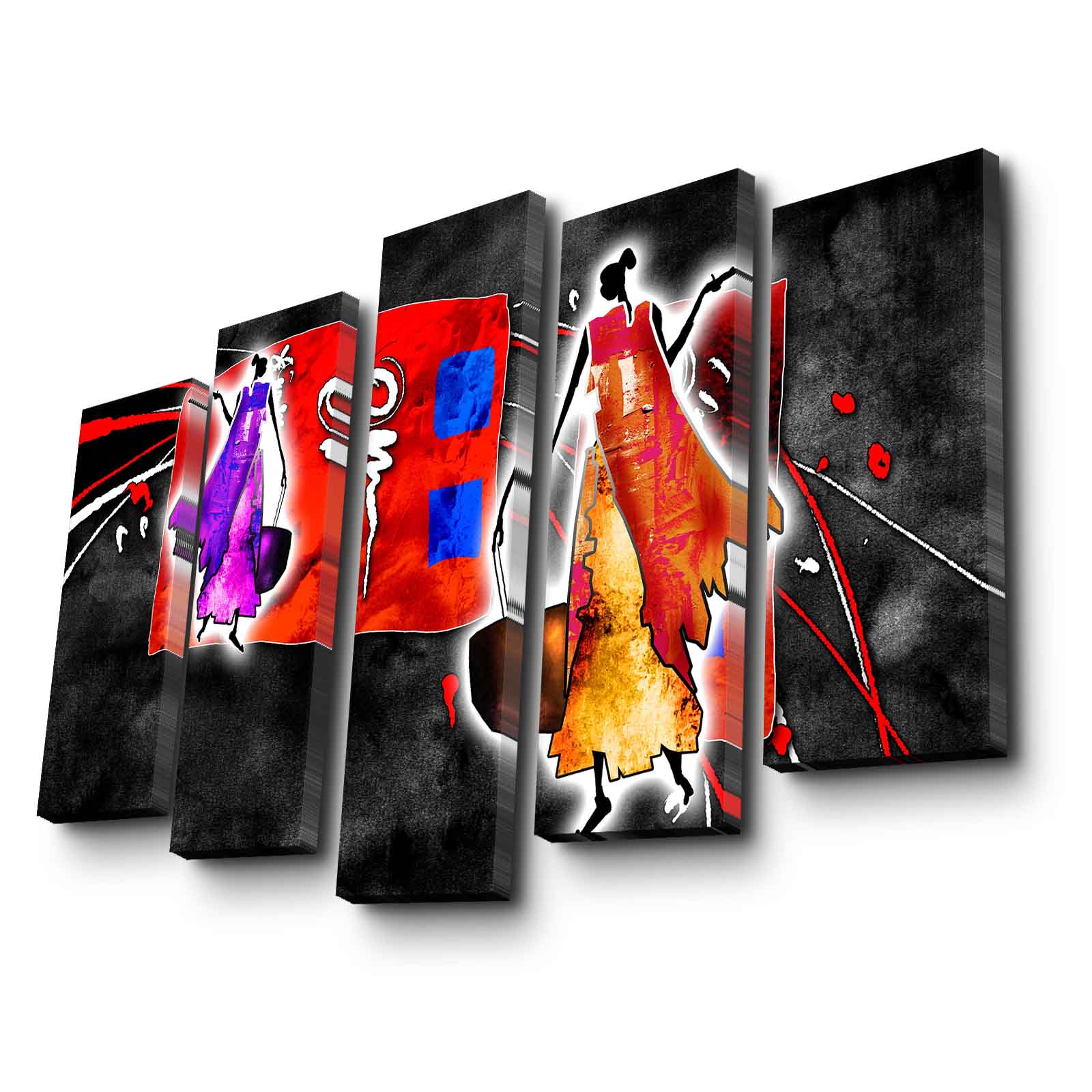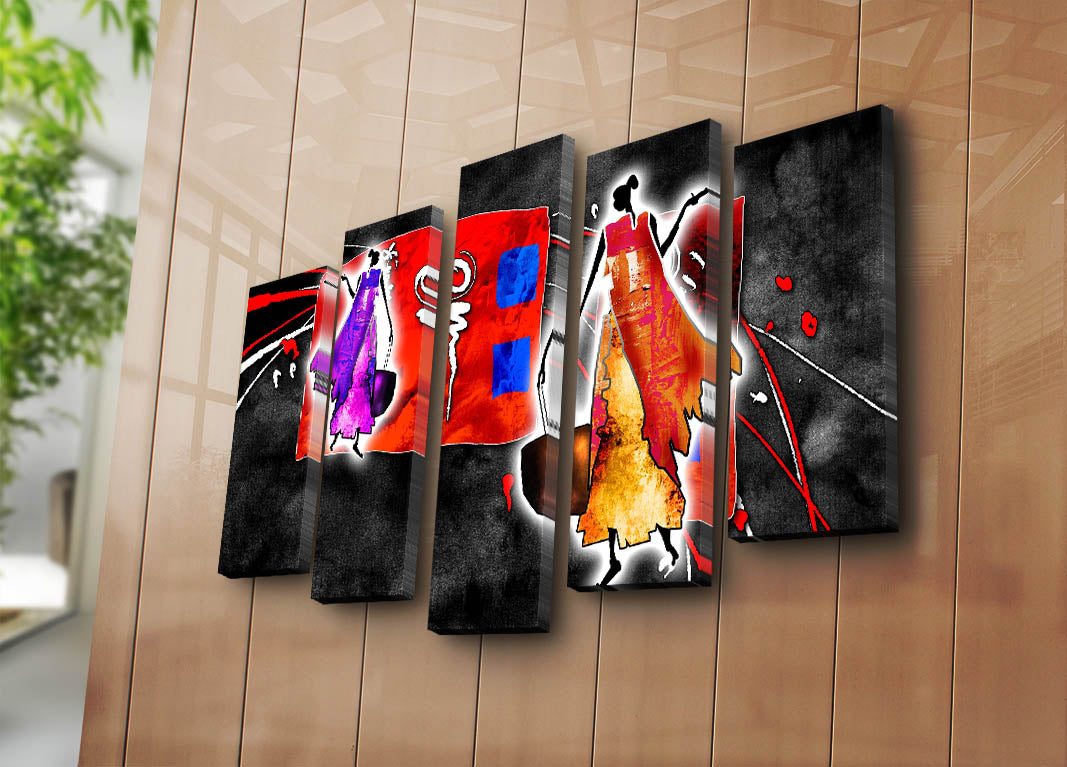 Tela Canvas Decorativa Multicolor - 5 Peças