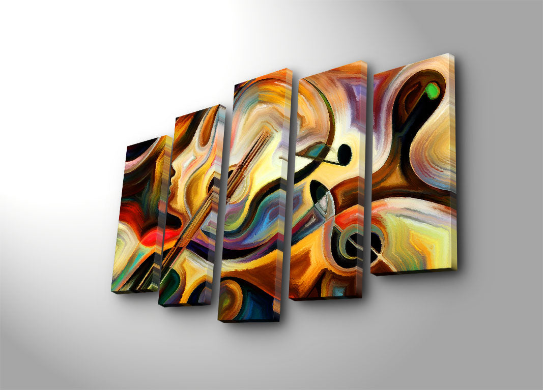 Quadro Decorativo 5 Peças Multicolor em Tela de Camurça 100% com Moldura de Madeira (105 x 70 cm) – 5PATK-231