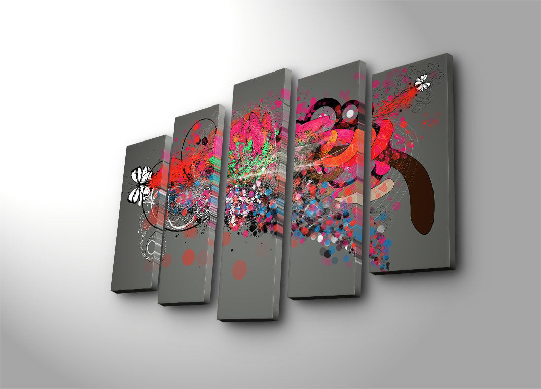 Quadro Decorativo em Tela (5 Peças) Multicolor | 100% Suede Canvas e Moldura 100% Madeira | 105 x 70 cm – 5PATK-236