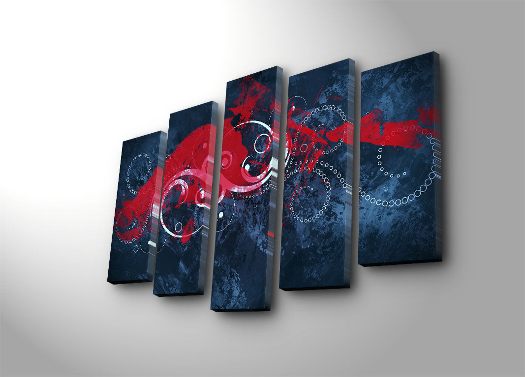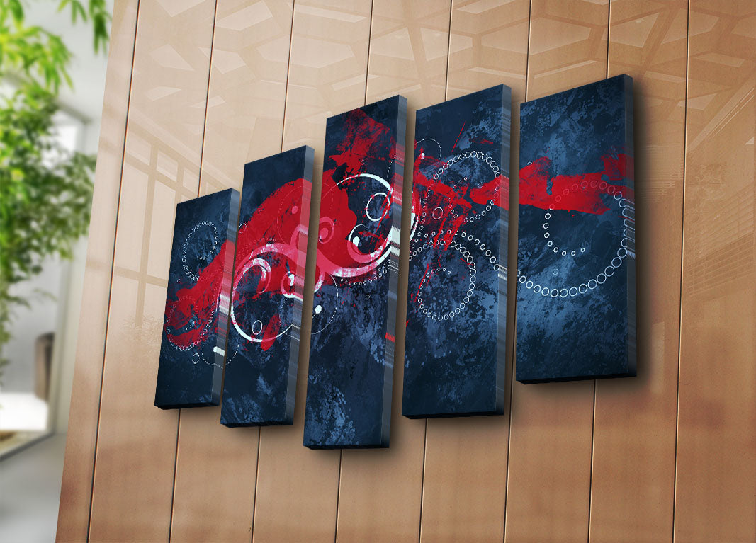Tela Decorativa Multicolor em Suede, 5 Peças (5PATK-238) — Moldura de Madeira, 105 x 70 cm