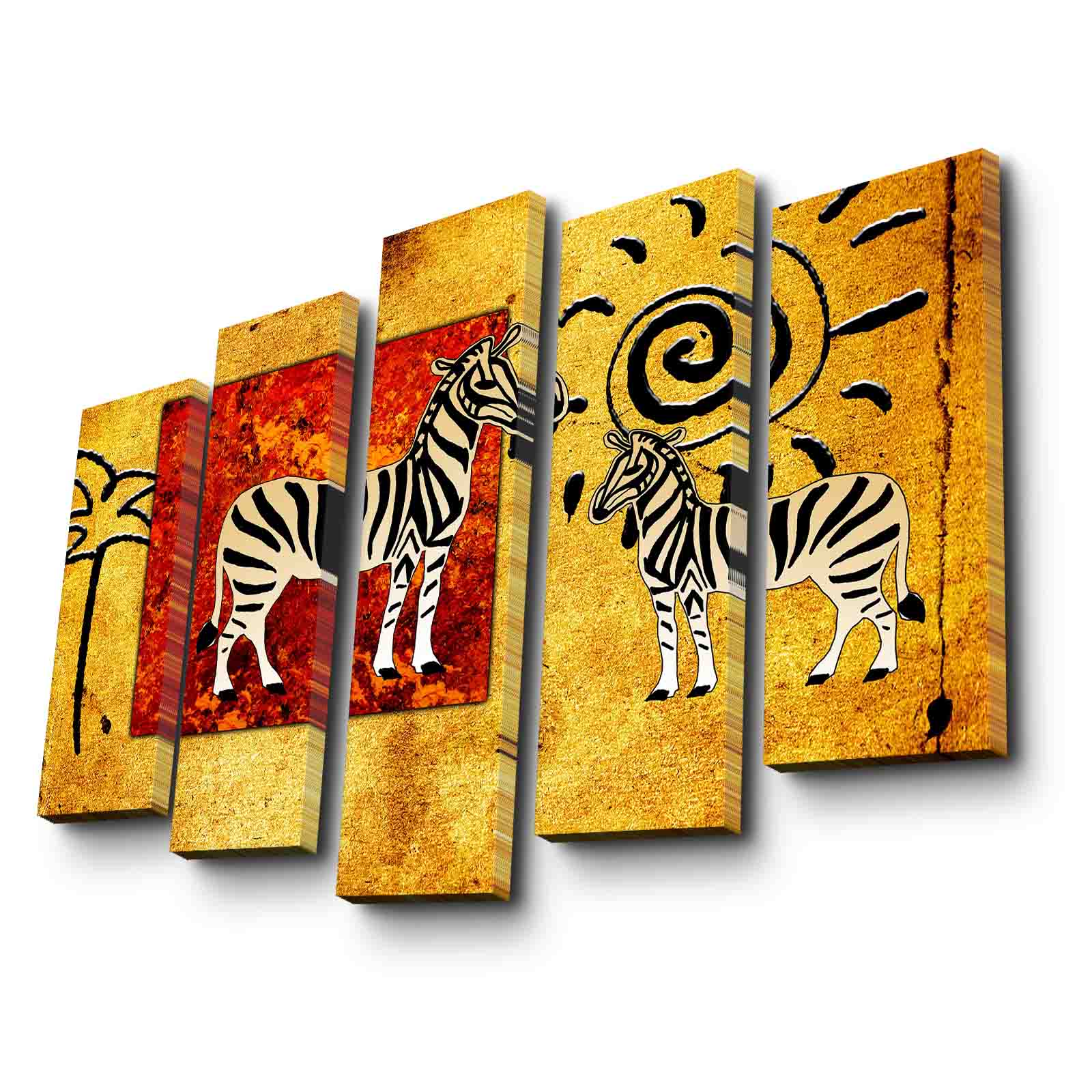 Quadro Decorativo em Tela 5 Peças Multicolor — Suede 100% com Moldura de Madeira, 105 x 70 cm
