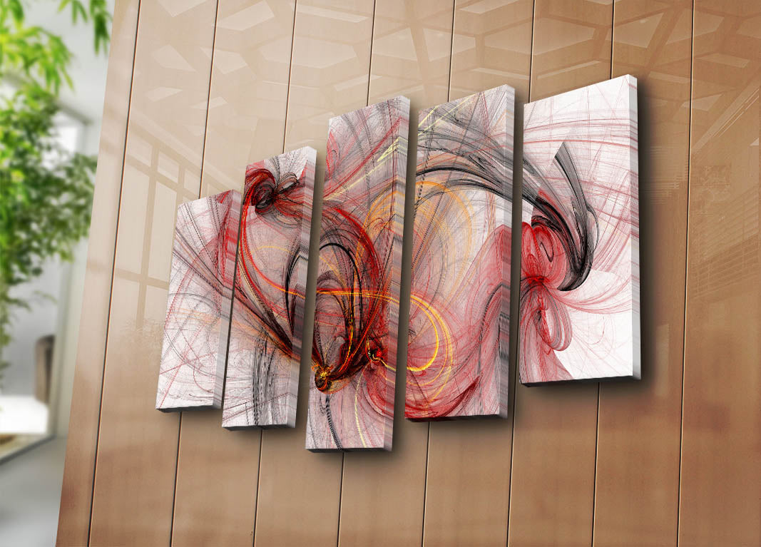 Quadro Decorativo em Tela Suede (5 Peças) Multicor – Moldura de Madeira 3 cm – 105 x 70 cm