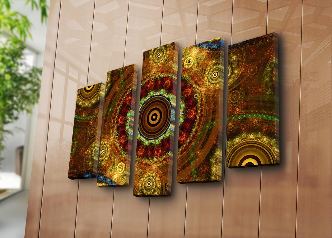 Quadro Decorativo em Tela 5 Peças Multicolor – 105 x 70 cm, Suede 100%, Moldura de Madeira