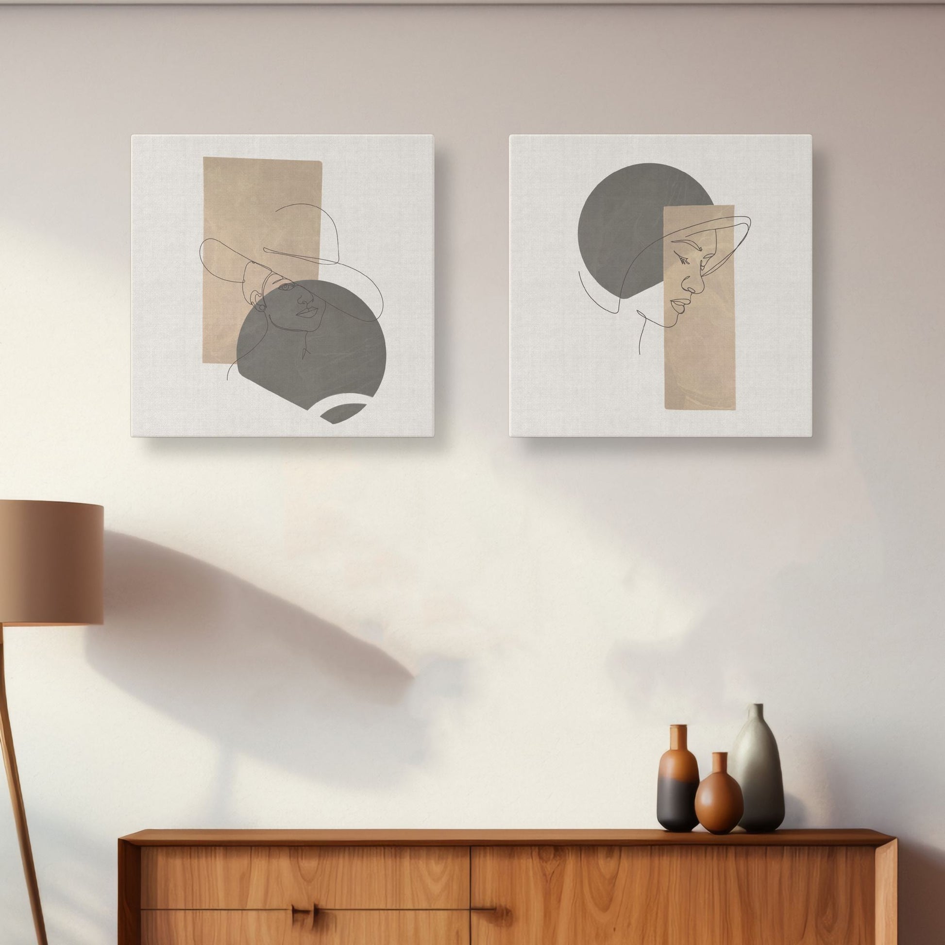 Com dimensões ideais de 30x30 cm cada, este conjunto de duas peças proporciona flexibilidade na composição, permitindo criar arranjos personalizados que se adaptam perfeitamente ao seu espaço. Seja na sala de estar, quarto, escritório ou hall de entrada, estas telas adicionam personalidade e requinte ao ambiente.