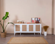 Com várias prateleiras e portas com fechamento suave, esta consola oferece amplo espaço de armazenamento para todos os seus itens essenciais. Mantenha seus pertences organizados e arrumados enquanto adiciona um toque de charme contemporâneo à sua sala de estar, quarto ou corredor.