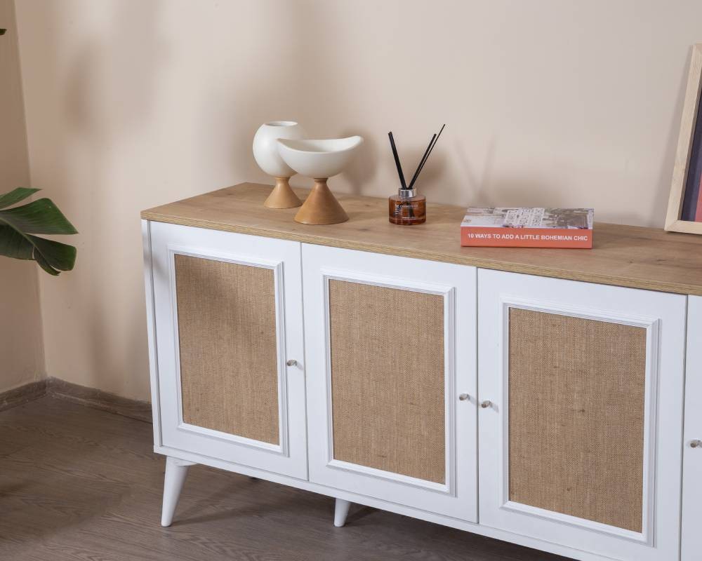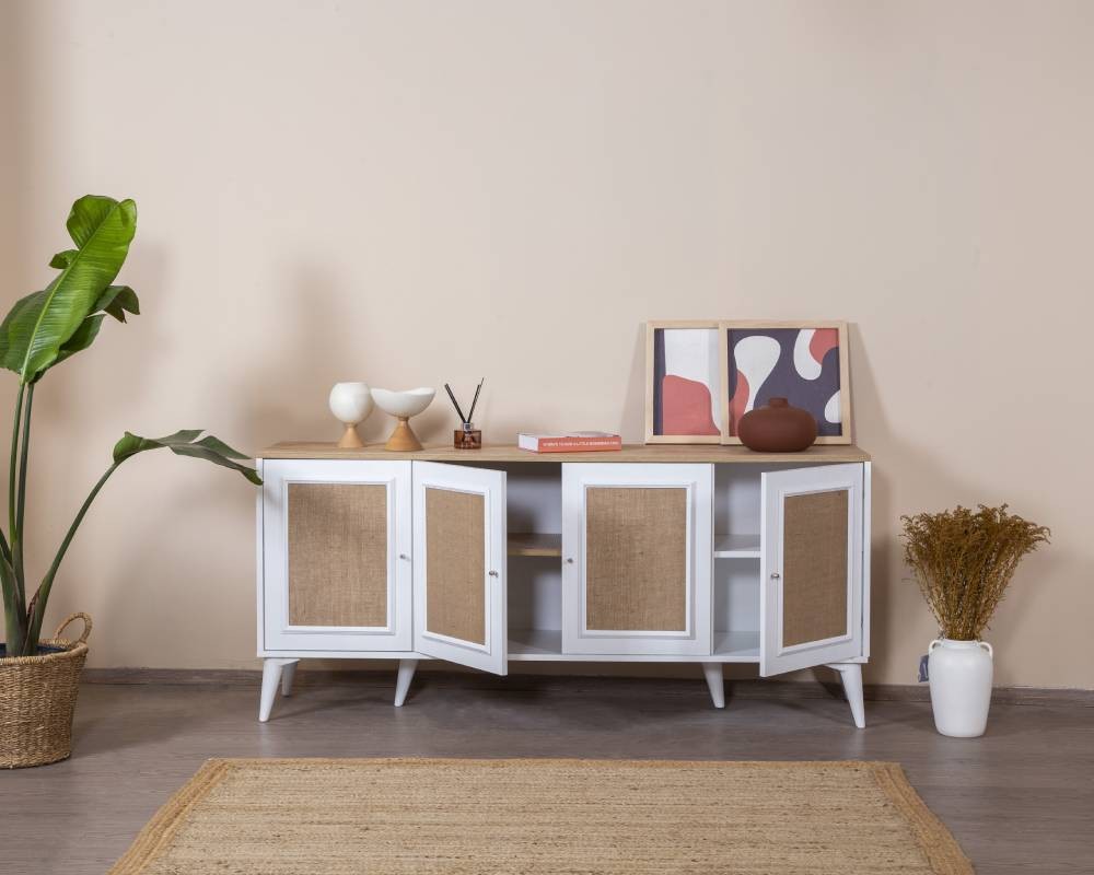 Aparador de MDF – 80 cm x 180 cm x 41 cm – Branco e Carvalho