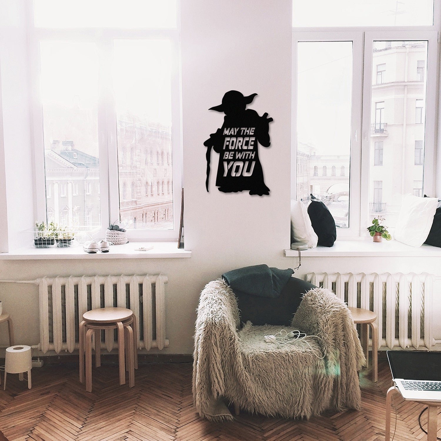 Esta impressionante peça decorativa em metal preto é perfeita para qualquer fã de Star Wars que deseja adicionar um toque épico à sua casa, escritório ou cave. Com o icónico lema "May The Force Be With You", esta decoração de parede não é apenas um acessório - é uma declaração de paixão pela saga mais amada do cinema.