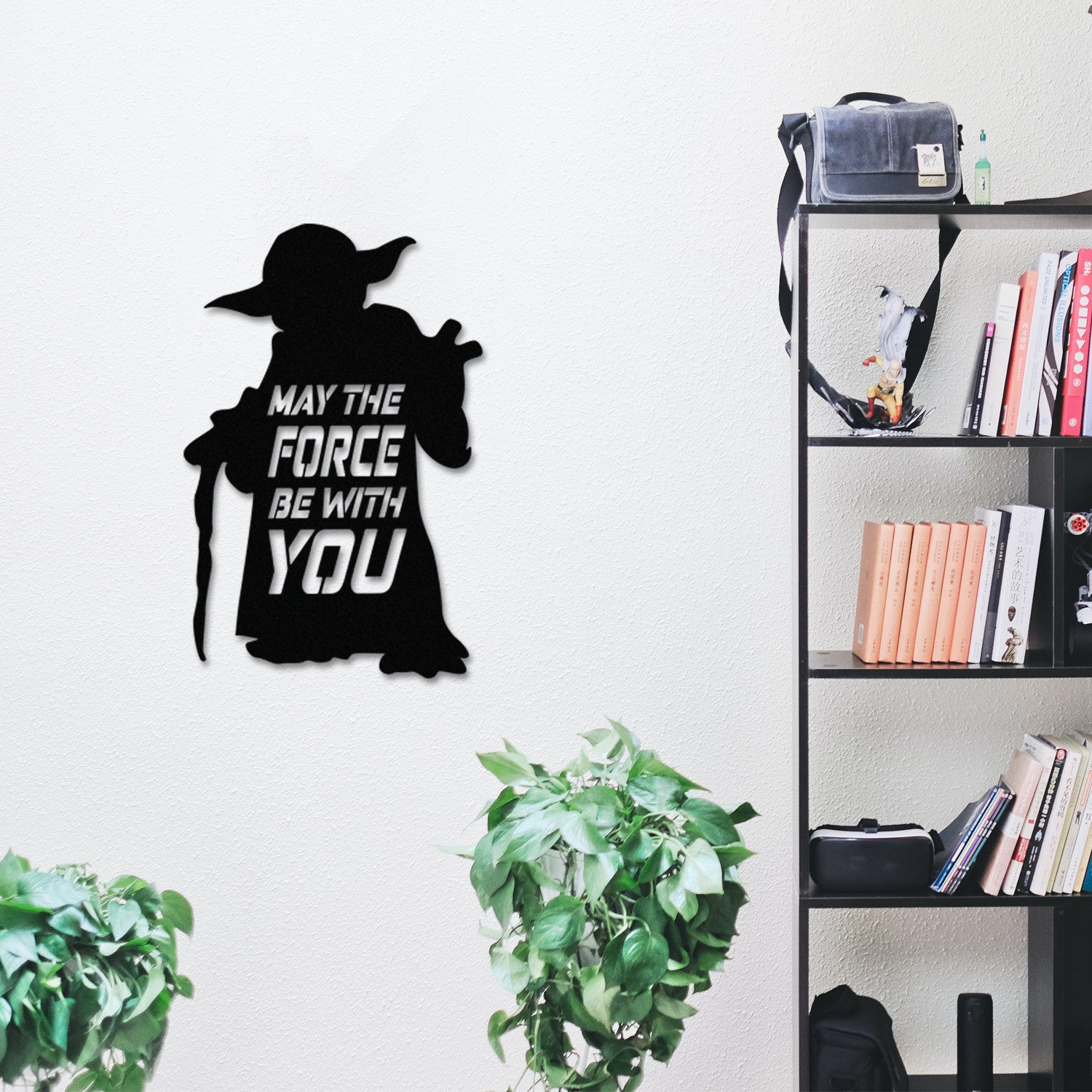 Decoração de Parede em Metal “Que a Força Esteja Contigo” – Preto, 33x50 cm
