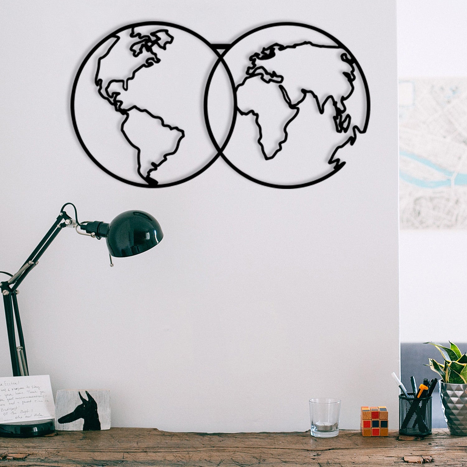 Descubra o mundo todos os dias com este elegante mapa-mundo em metal preto que combina sofisticação e paixão por viagens. Esta peça decorativa única transforma qualquer espaço numa galeria de inspiração global.