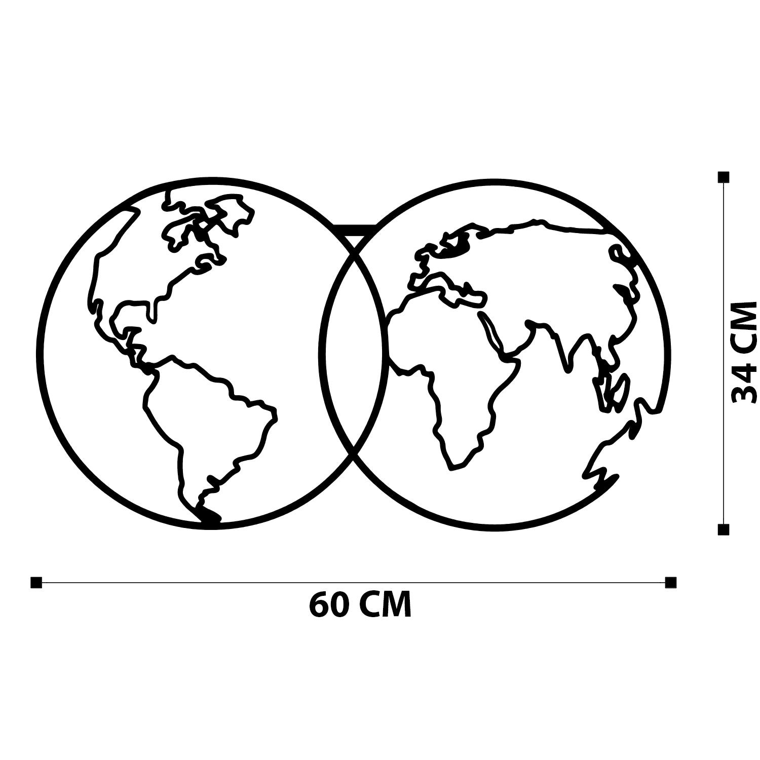Mapa‑Mundo em Metal Preto 60x34 cm – Decoração de Parede 100% Metal