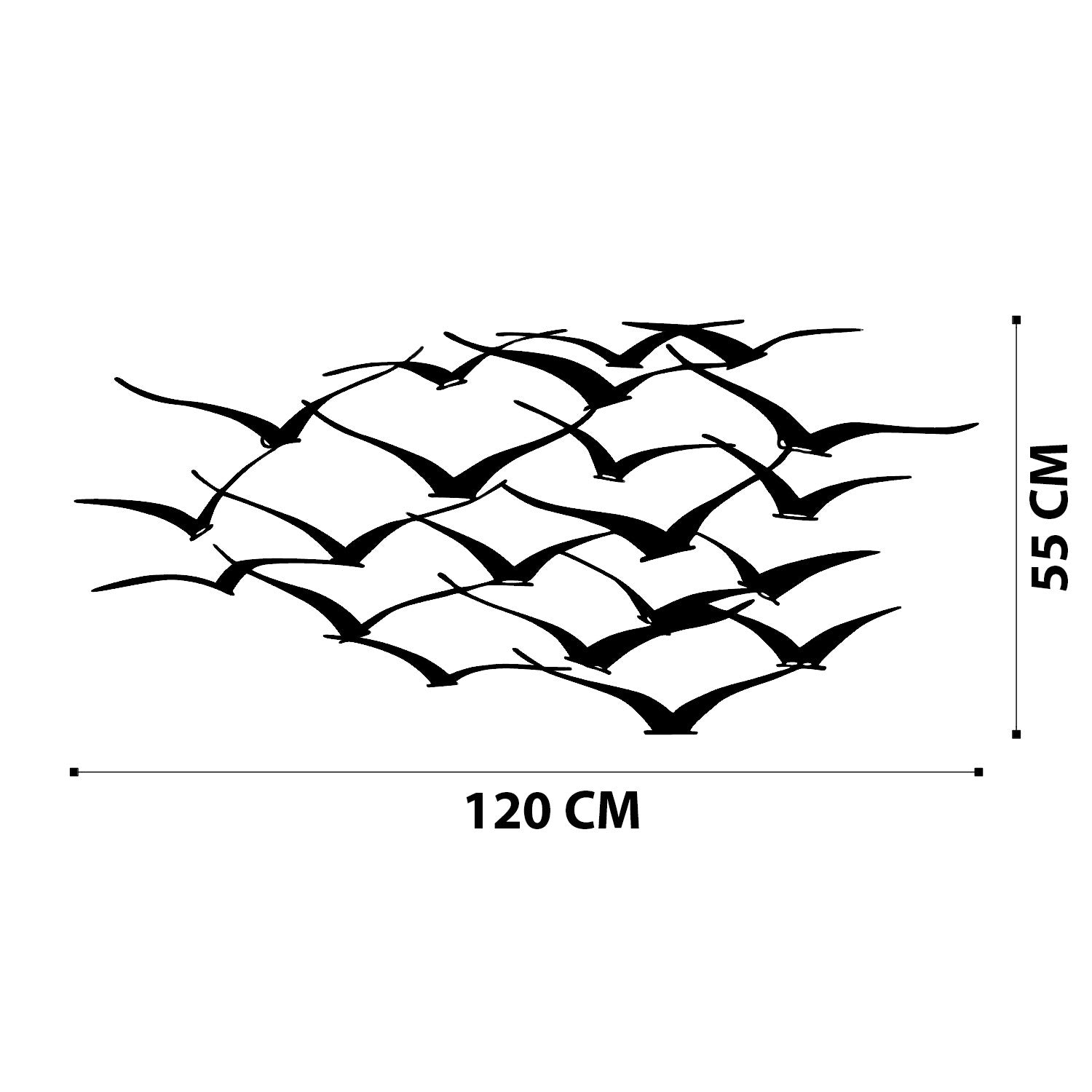 Bando de Pássaros – Acessório Decorativo de Parede em Metal Preto 100% (1,2 mm), 120 x 55 cm