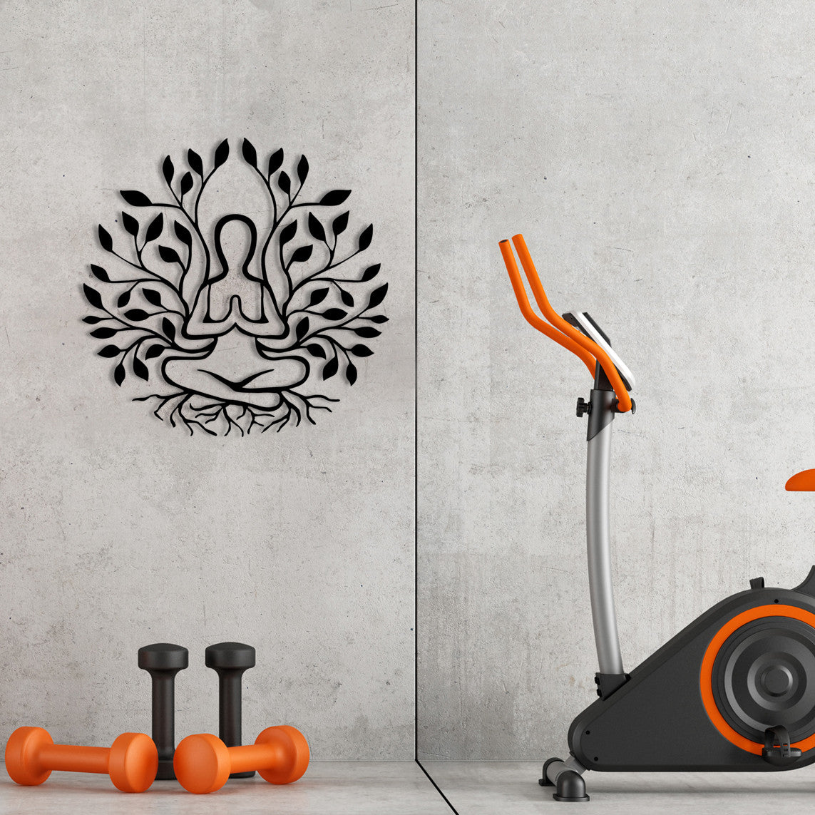 Acessório Decorativo de Parede em Metal “Yoga” – Preto, 51x52 cm (1,2 mm, 1,45 kg)