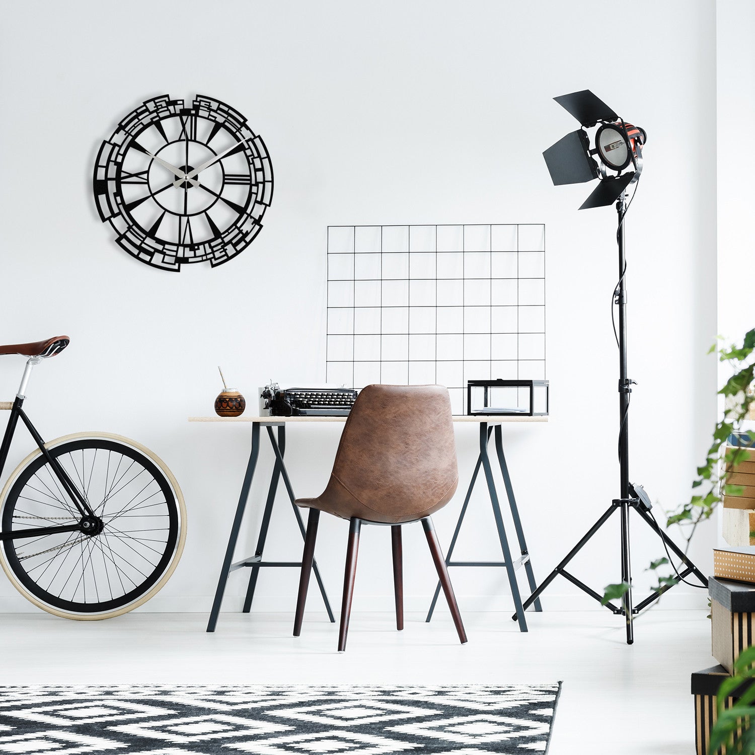Este relógio decorativo não é apenas um marcador de tempo – é um statement de bom gosto. A sua construção robusta em metal garante anos de funcionamento fiável, enquanto o design minimalista e elegante se adapta perfeitamente a ambientes modernos, industriais ou clássicos.
