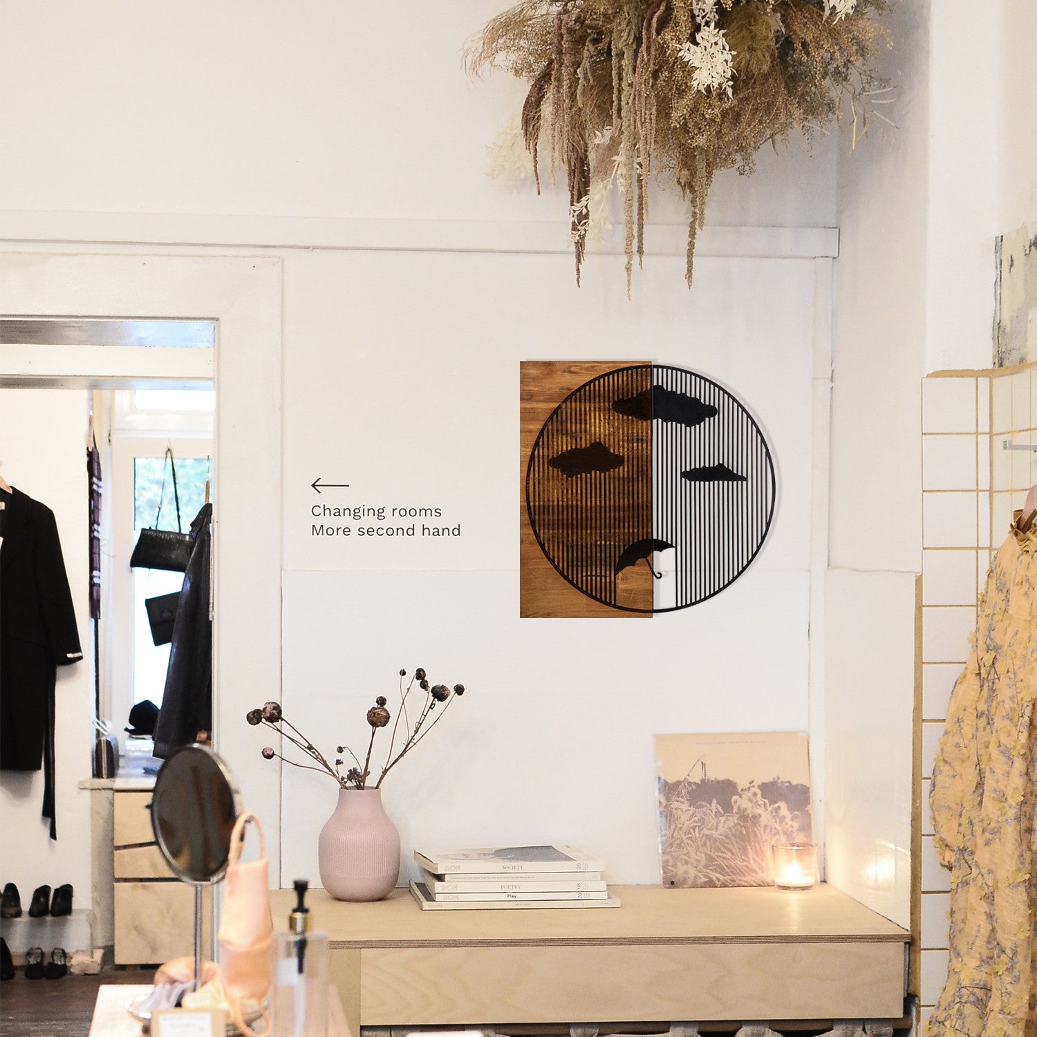 Yagmurlar 58 x 58 cm — Acessório Decorativo de Parede em Metal com Moldura de Madeira (Preto & Nogueira)