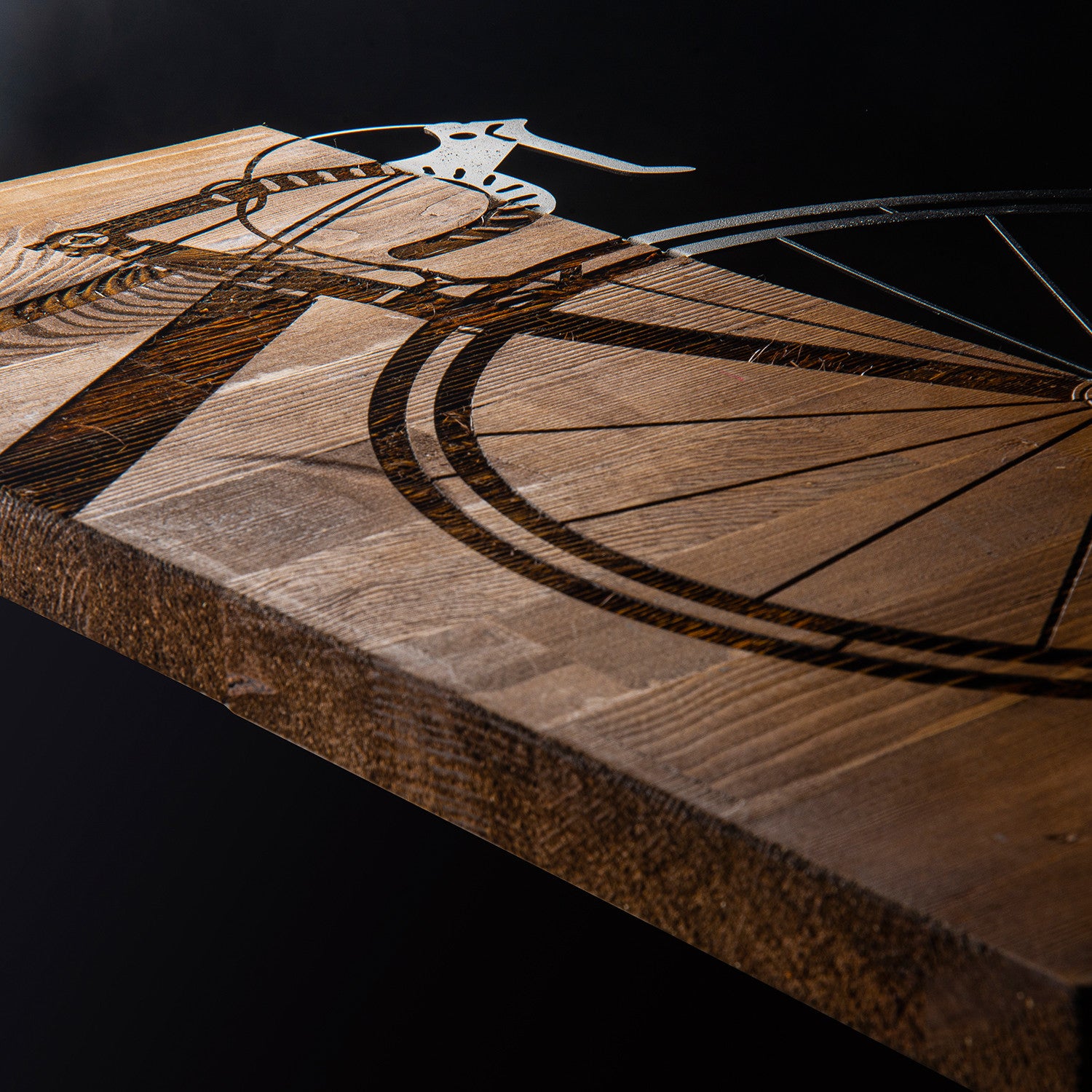 Bisiklet – Quadro Decorativo de Parede em Metal e Madeira (Preto/Nogueira), 45 x 58 cm
