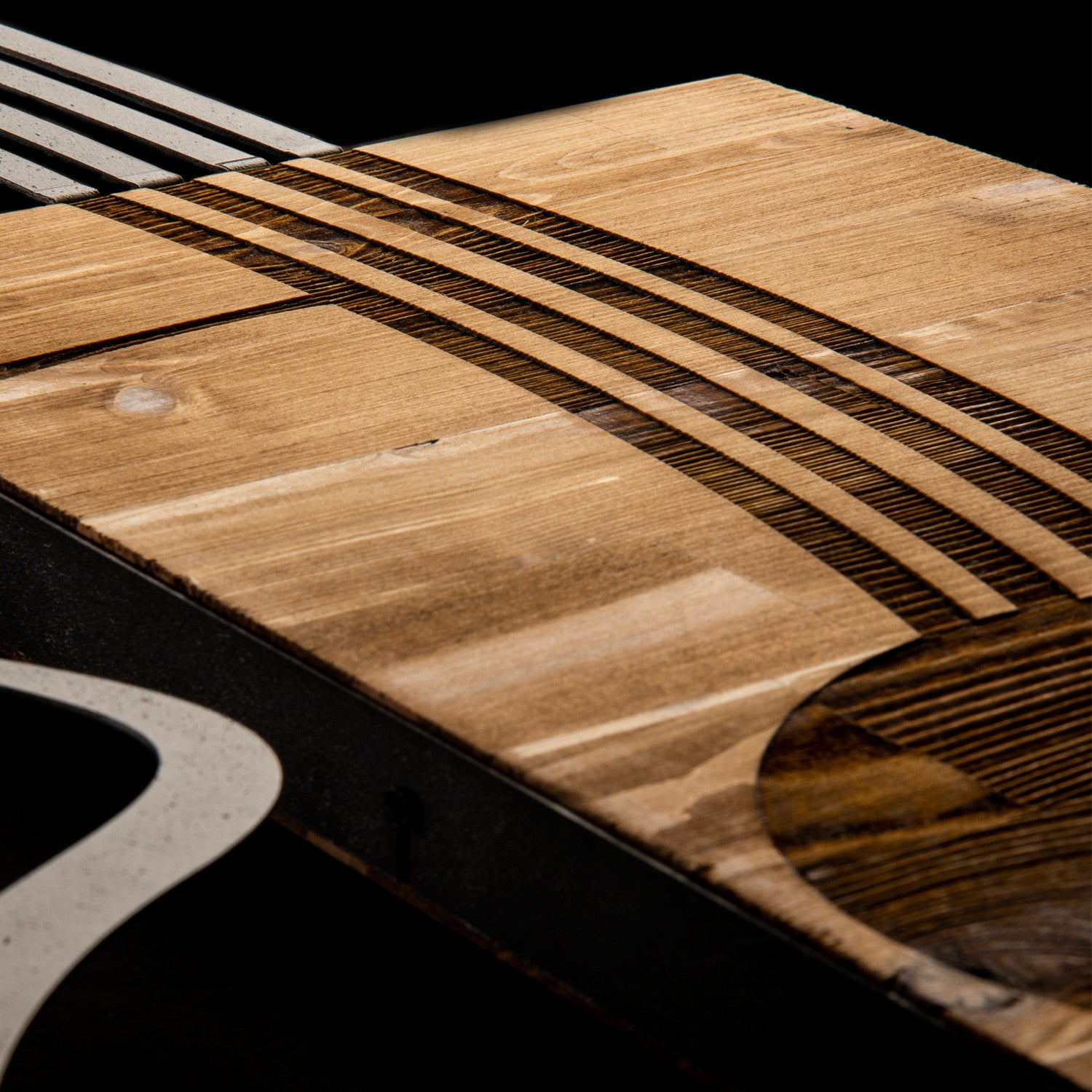 O Gitar é muito mais do que um simples acessório decorativo - é uma peça de arte que combina na perfeição o charme do metal preto com a sofisticação da madeira de nogueira. Esta extraordinária peça de parede irá elevar instantaneamente a atmosfera de qualquer divisão da sua casa.