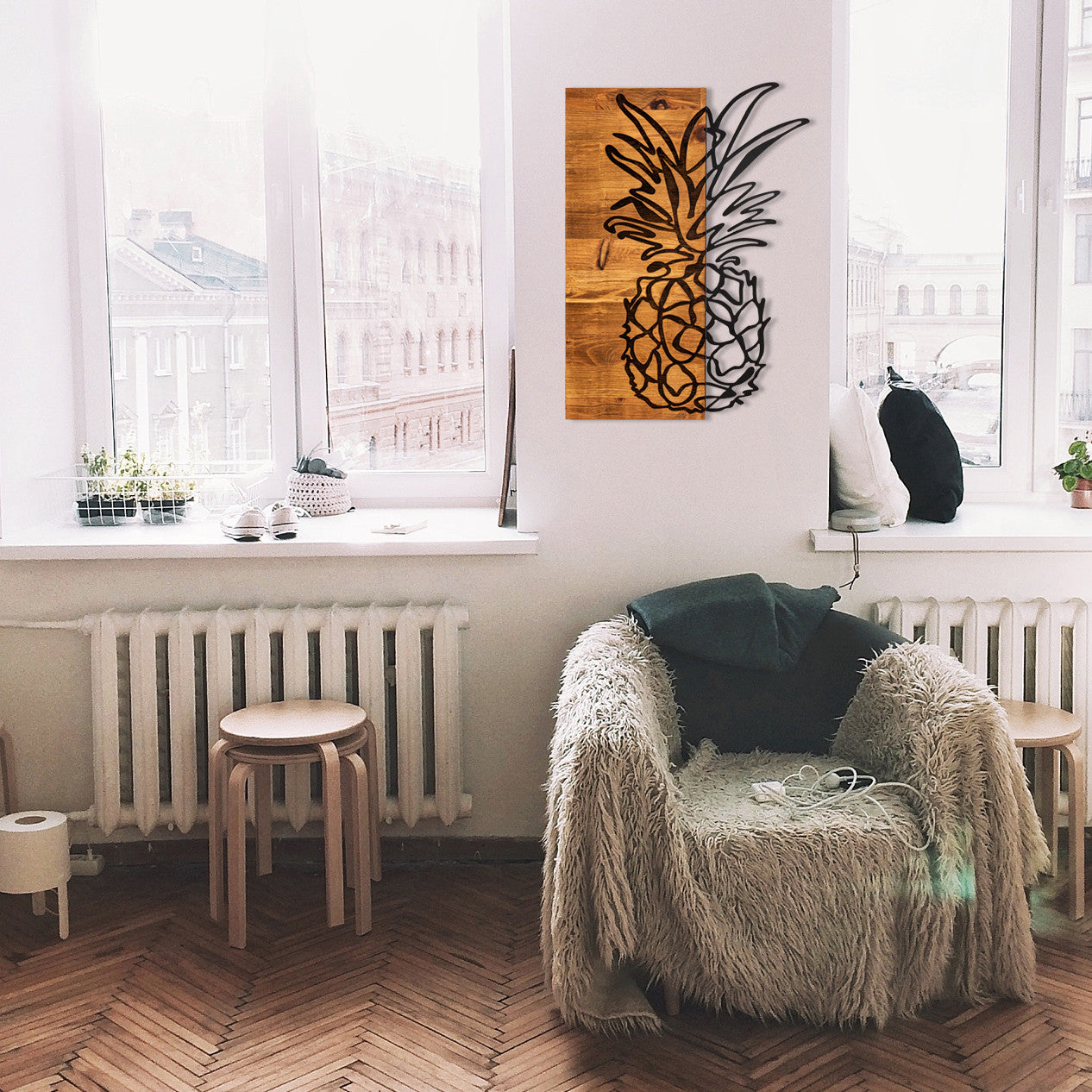 Bahama – Acessório Decorativo de Parede em Metal com Moldura de Madeira, Preto & Nogueira, 42x58 cm
