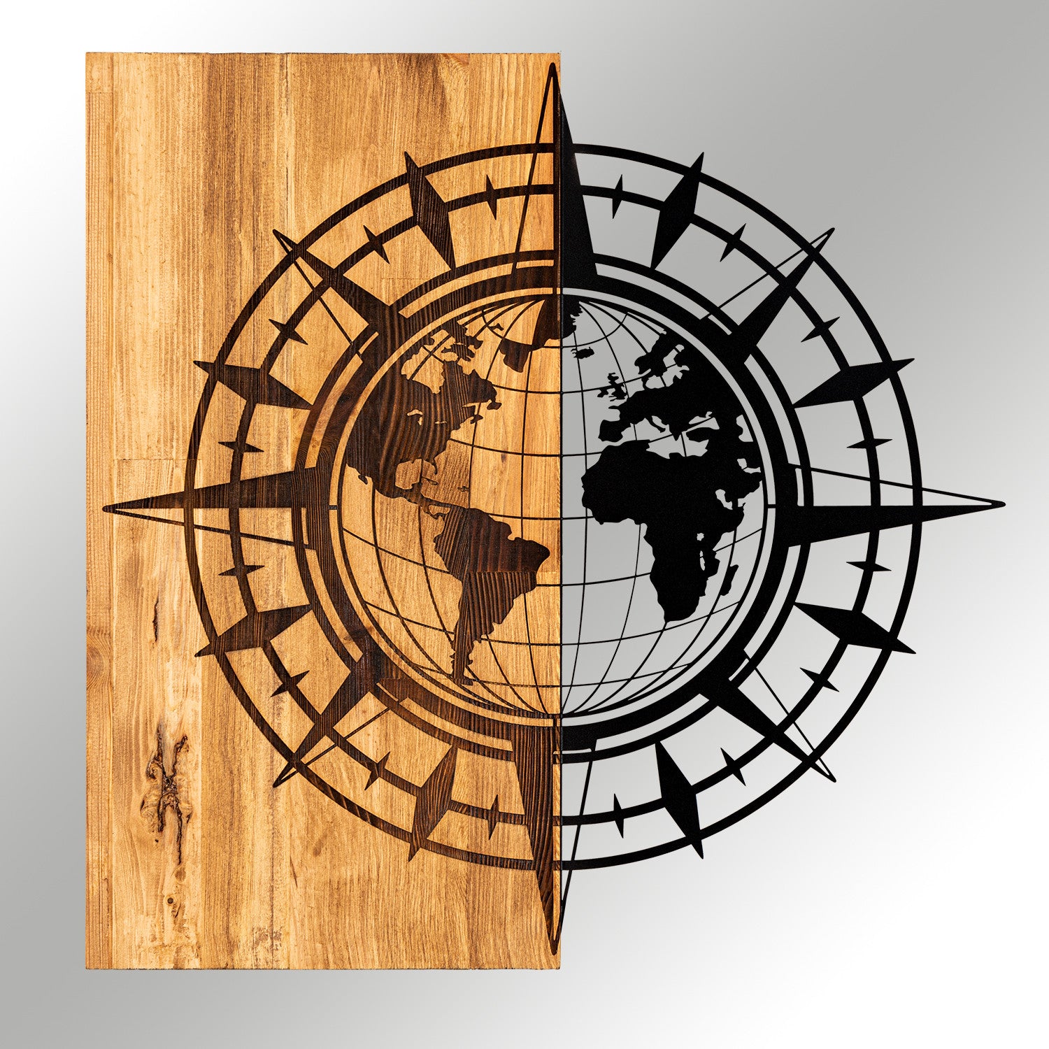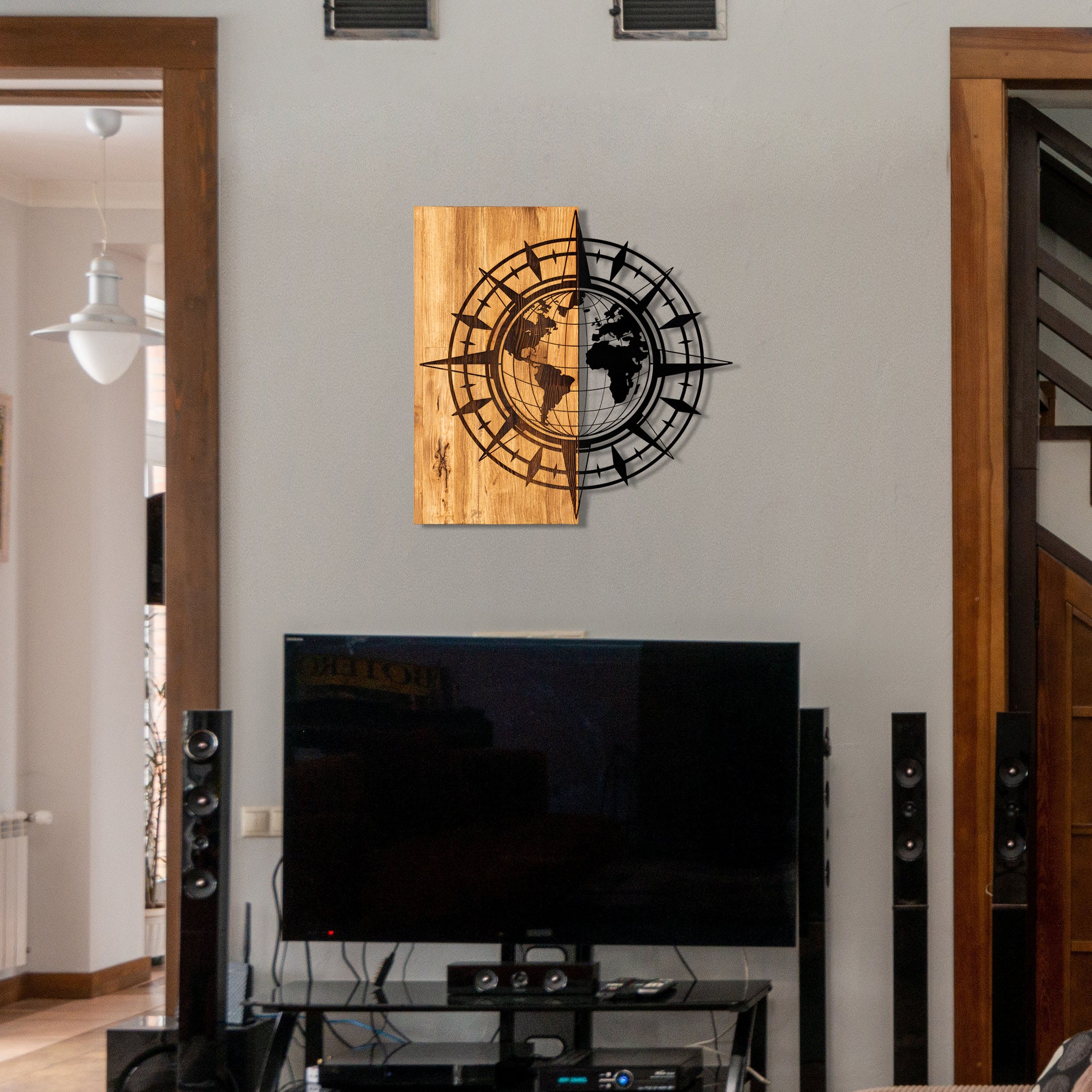 Esila – Acessório Decorativo de Parede em Metal com Moldura em Madeira de Nogueira, Preto, 57 x 58 cm (279ENZ1778)