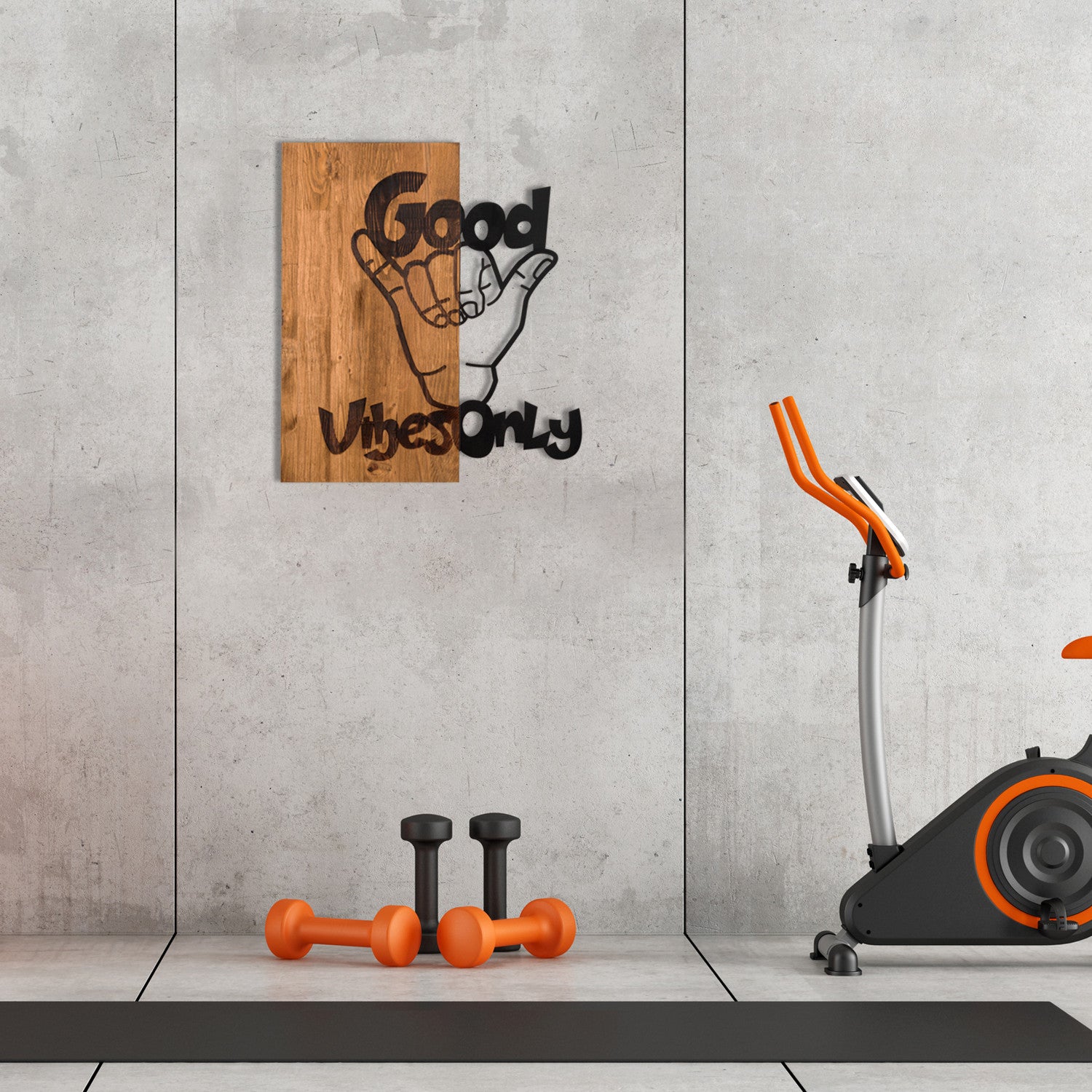 Good Vibes – Acessório de Parede Decorativo em Metal (1,2 mm) com Moldura em Madeira de Nogueira, 50x58 cm, Preto