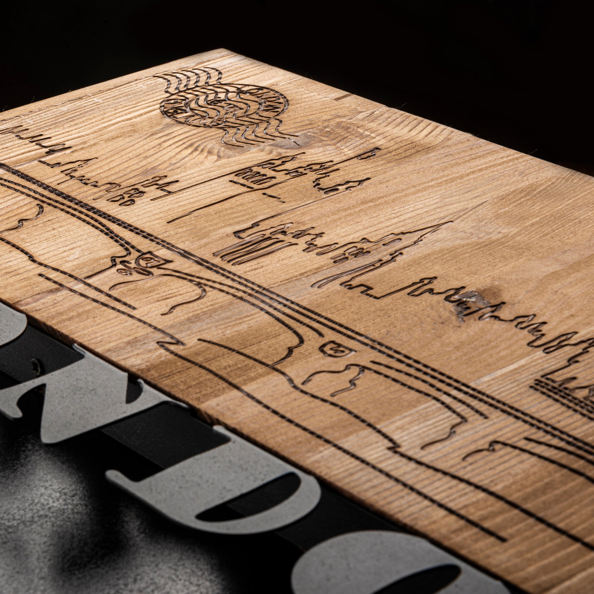 Transforme o seu espaço com sofisticação contemporânea. O London v2 é mais do que um simples acessório decorativo - é uma declaração de estilo que combina na perfeição o charme industrial do metal com a elegância natural da madeira de nogueira.