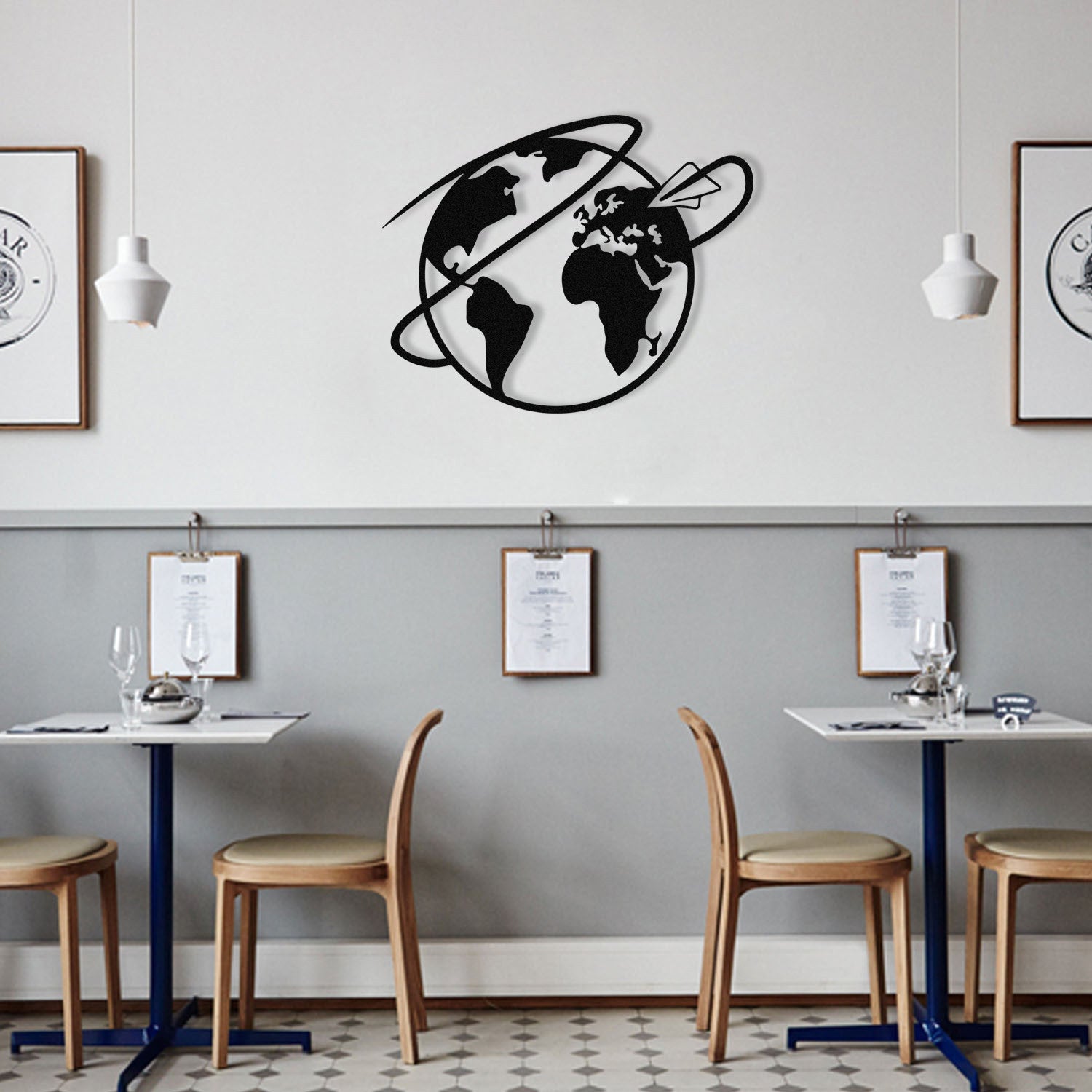 Travel — Acessório Decorativo de Parede 100% Metal, Preto, 55x44 cm