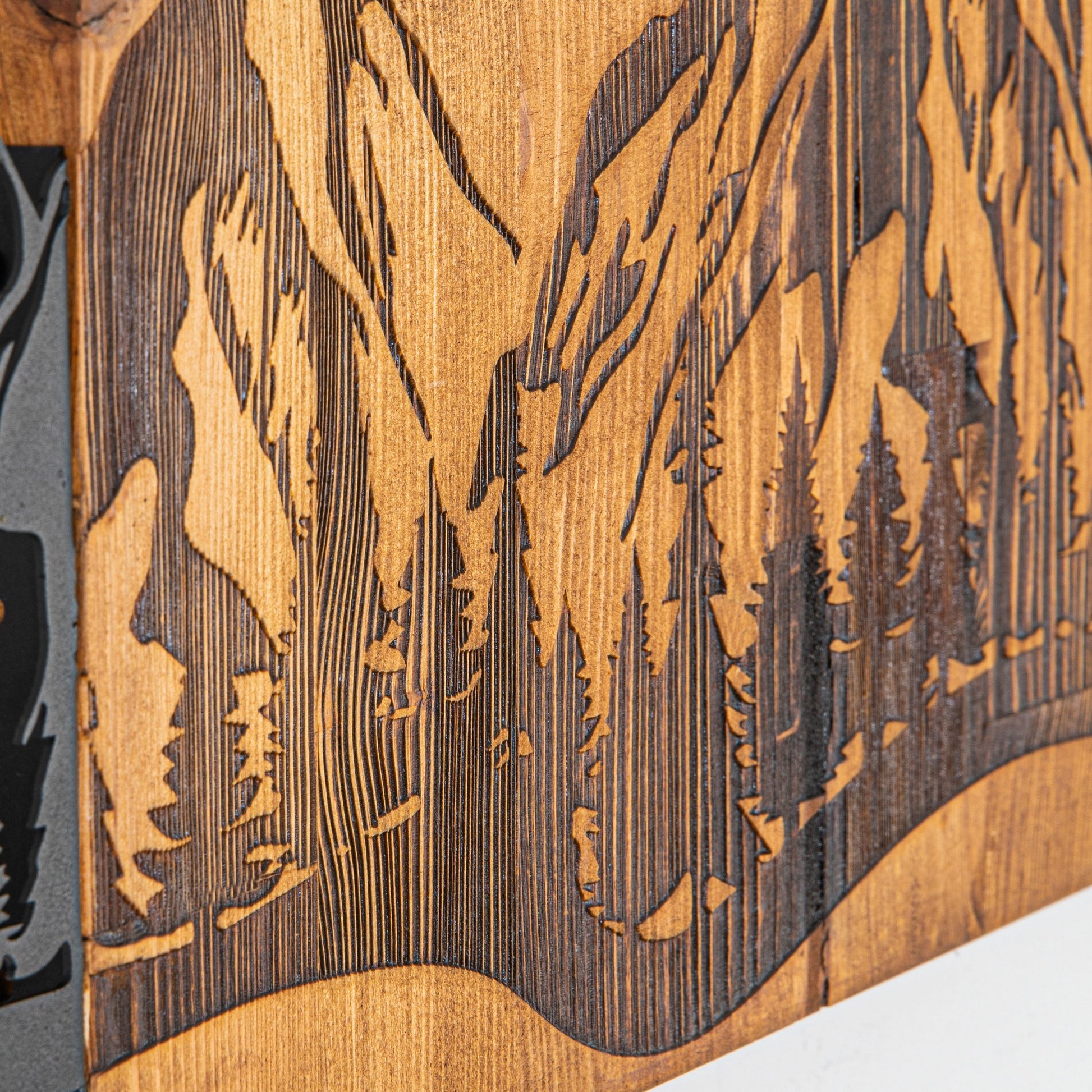 Napoli – Acessório Decorativo de Parede em Metal com Moldura de Madeira, Preto/Nogueira, 58 x 40 cm