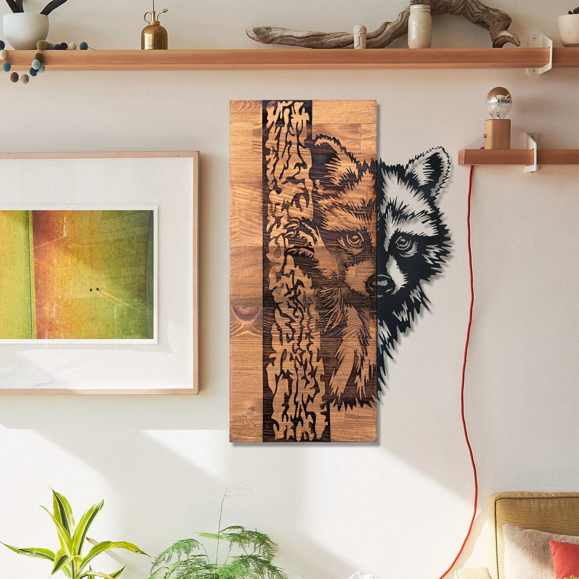Folivora – Acessório de Parede Decorativo em Metal e Nogueira, Preto, 37 x 57,5 cm