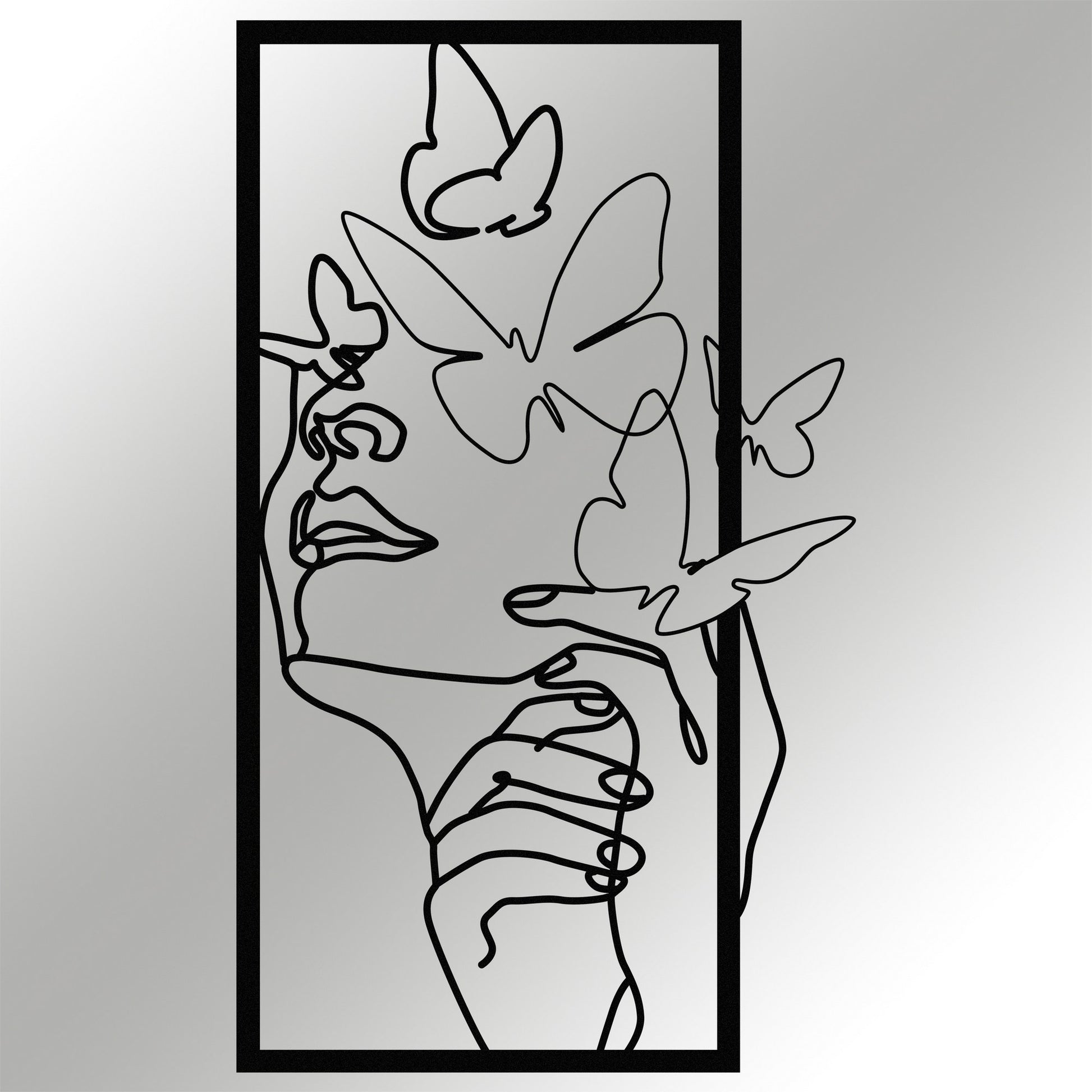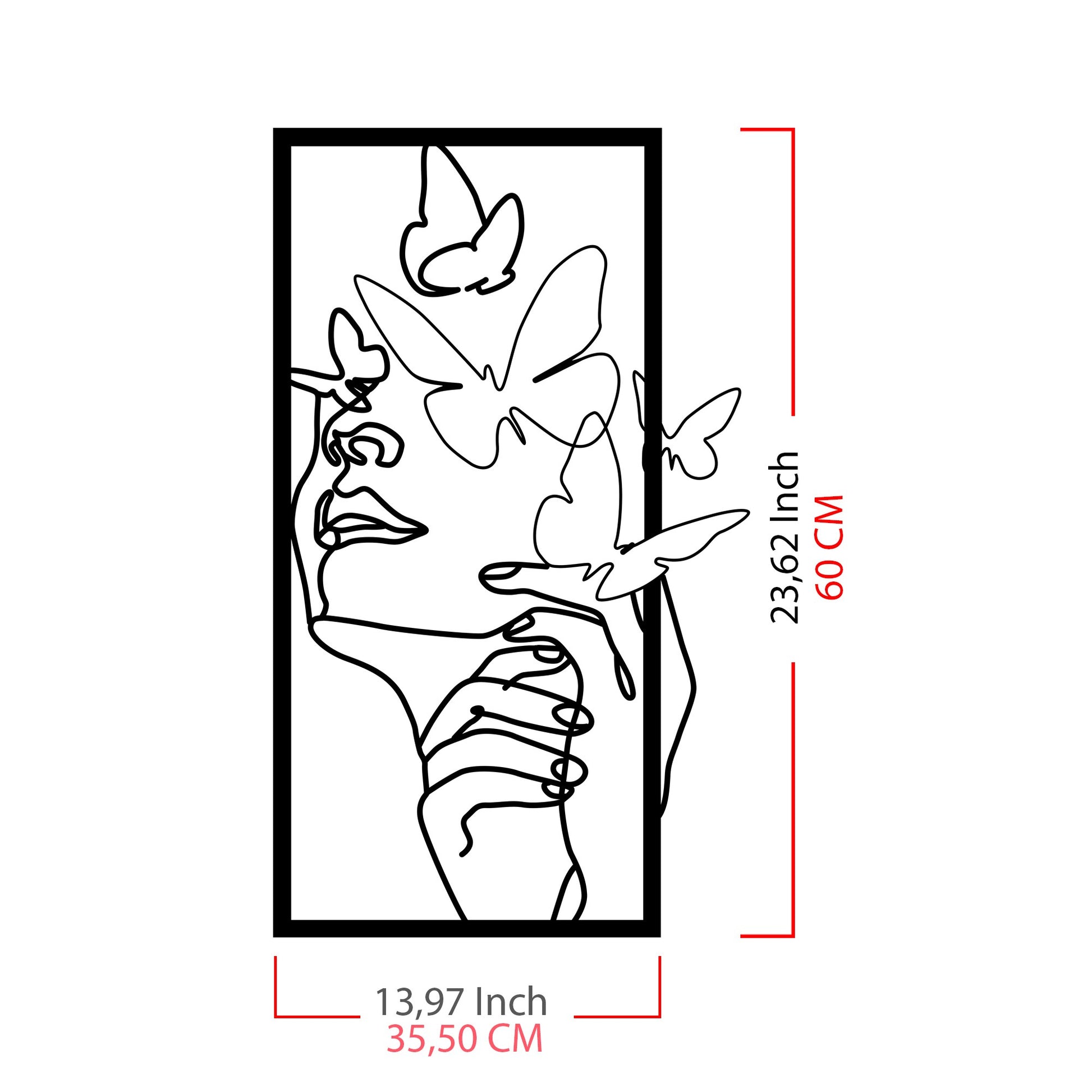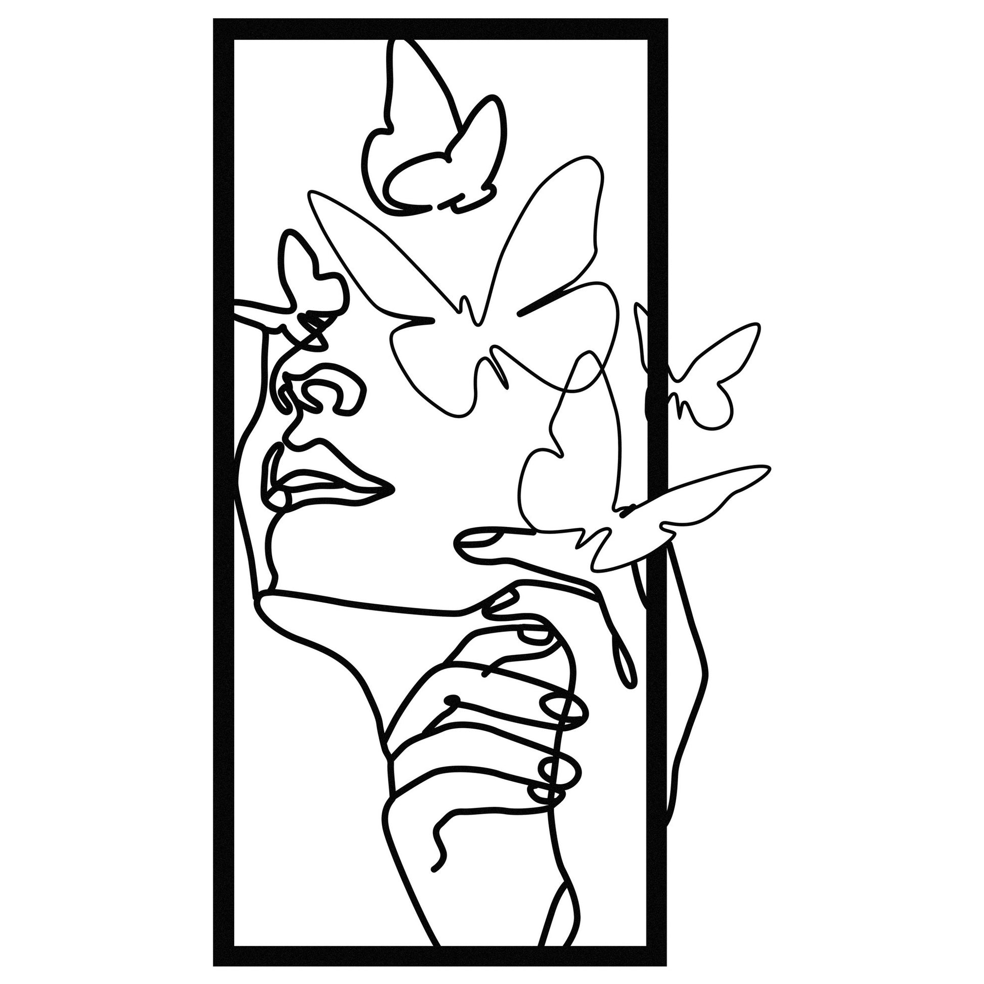 Butterfly Face Female – Acessório Decorativo de Parede em Metal Preto (100% metal, 1,2 mm), 35,5 x 60 cm