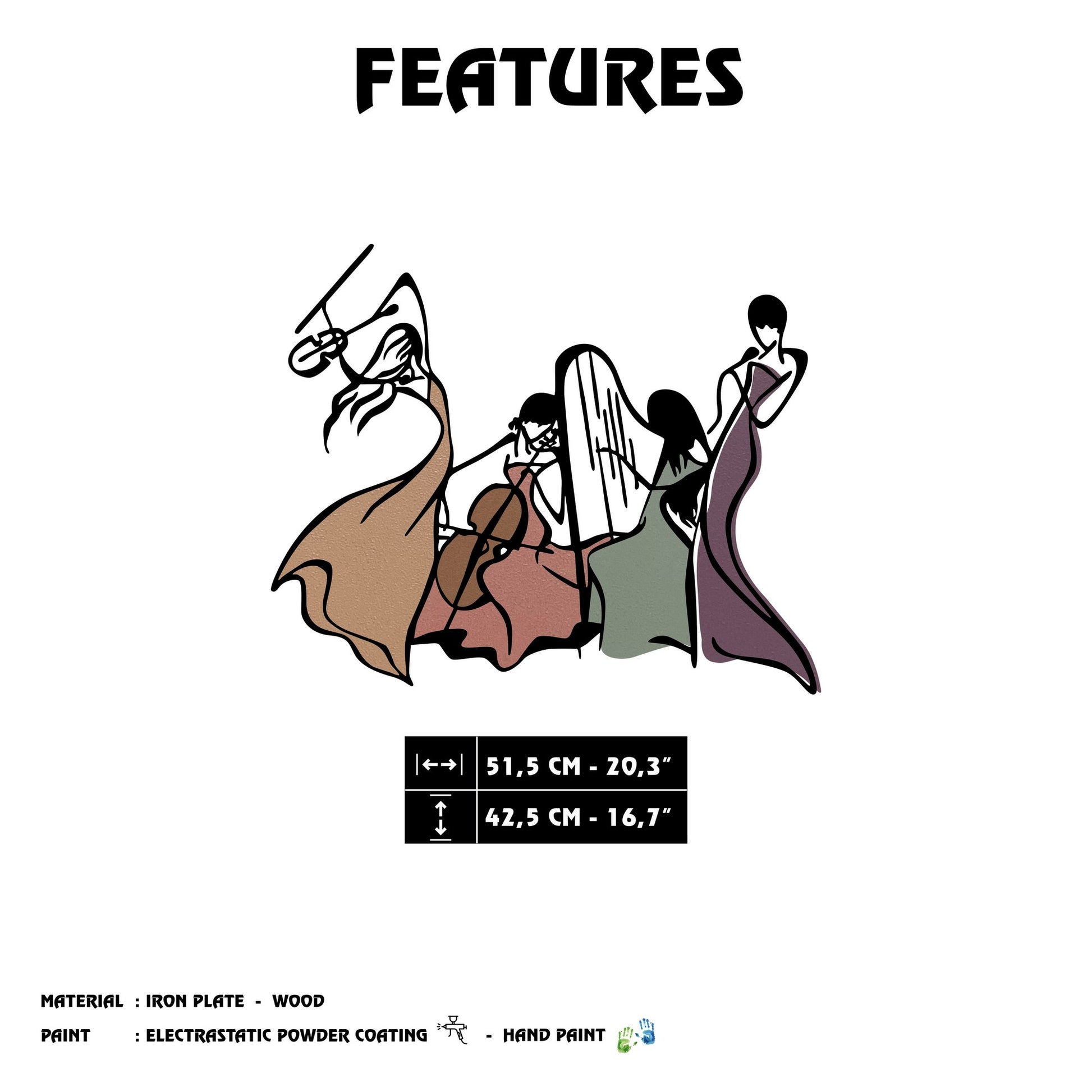 Orchestra S — Acessório de Parede Decorativo em Metal e Madeira, Multicolor (51,5 x 42,5 cm)
