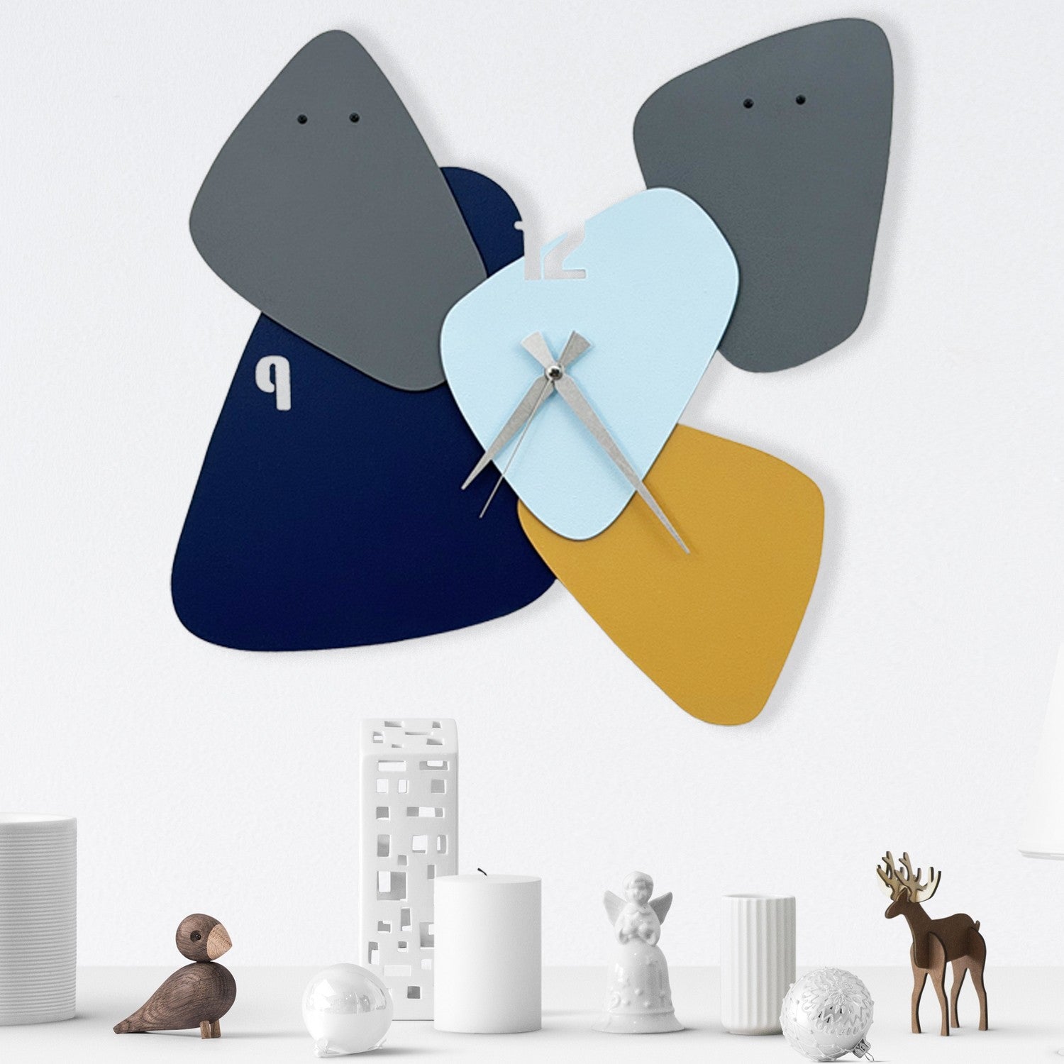 Este relógio decorativo oferece a combinação perfeita entre funcionalidade e estética. O seu design único em metal multicolor adiciona personalidade a qualquer espaço, enquanto mantém a precisão temporal que necessita no seu dia a dia.