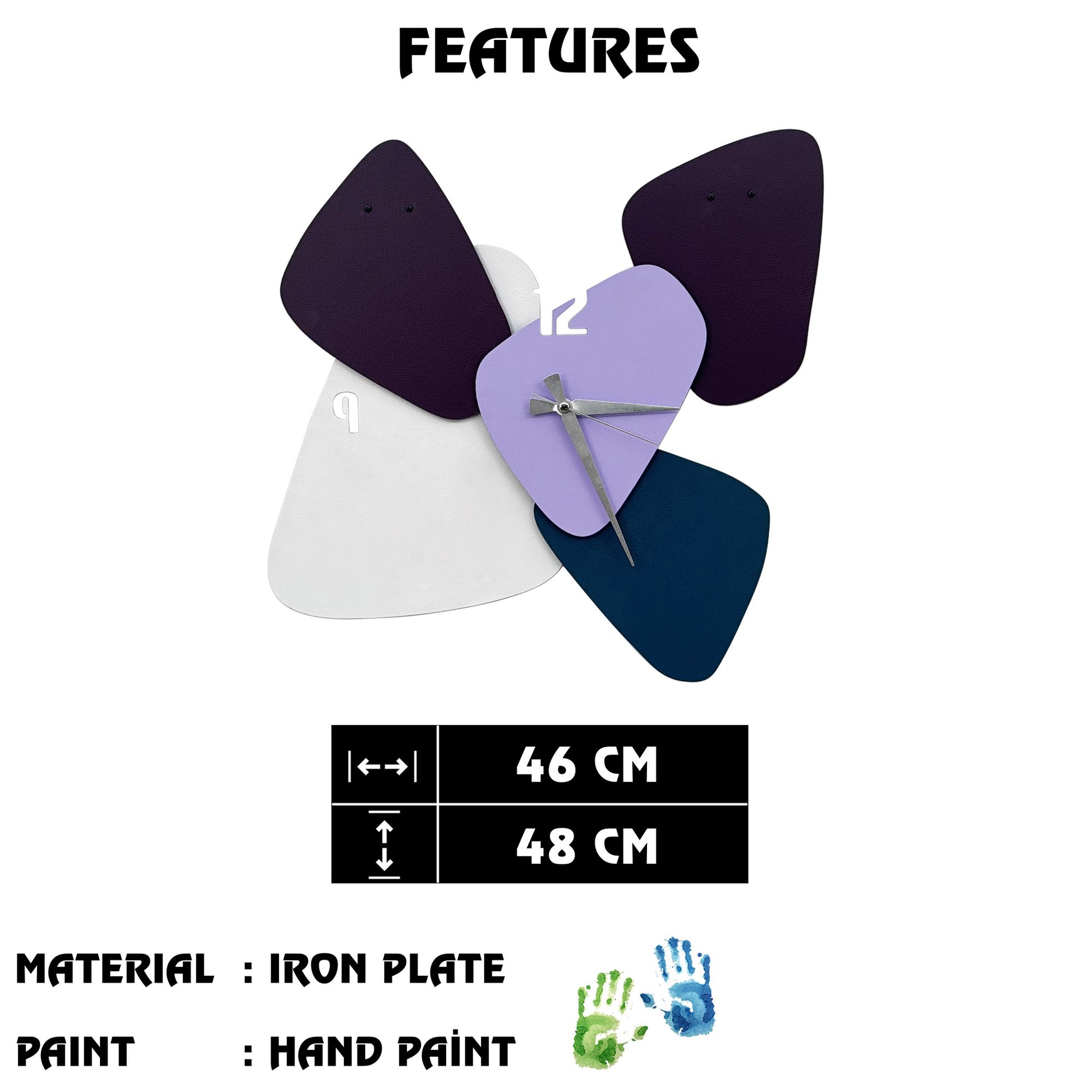 Relógio de Parede Decorativo em Metal Multicolor Asr-4, 46 x 48 cm (100% Metal, 1 mm)