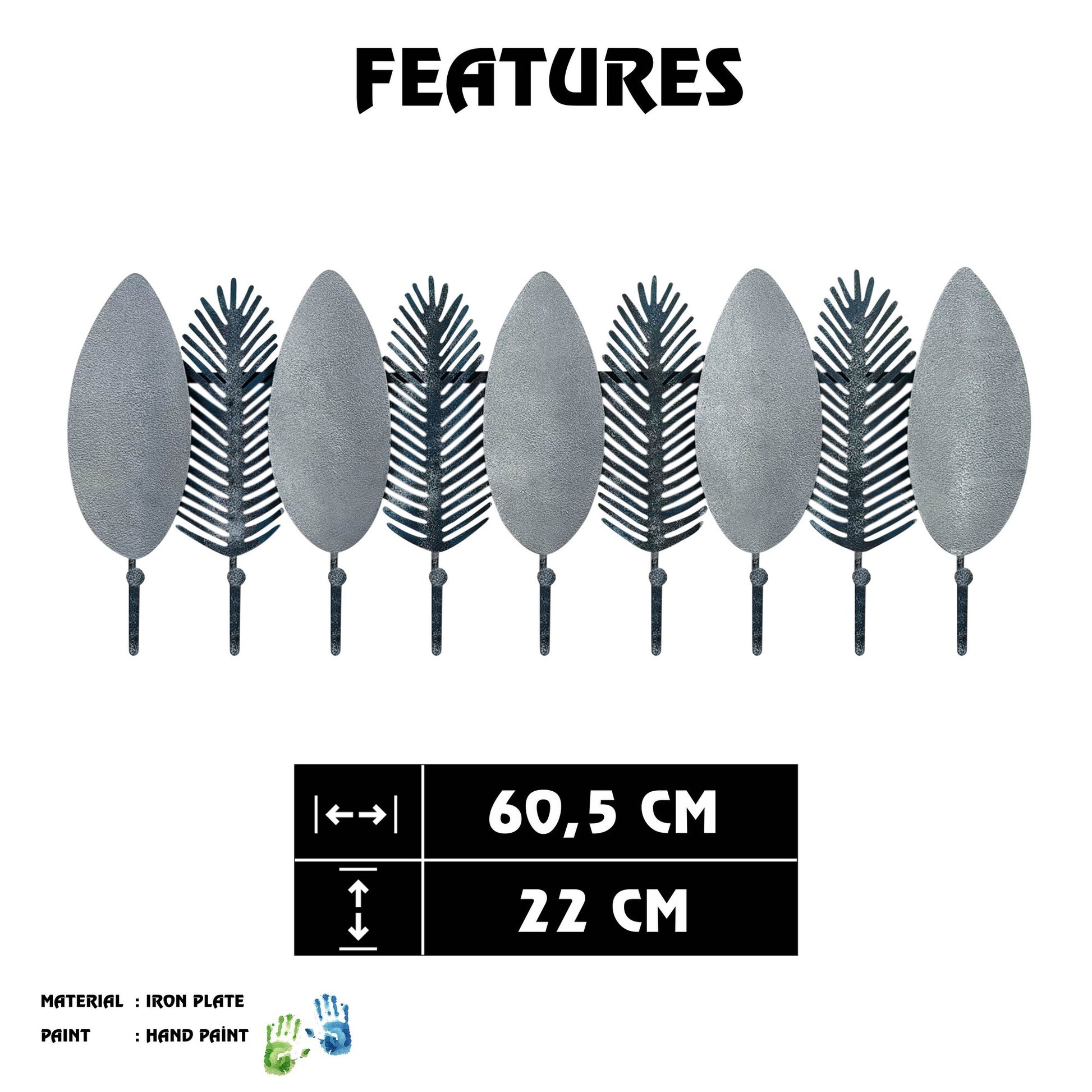 Cabide de Parede em Metal Nigar — Pintado à Mão, Multicolor, 60,5 x 22 cm