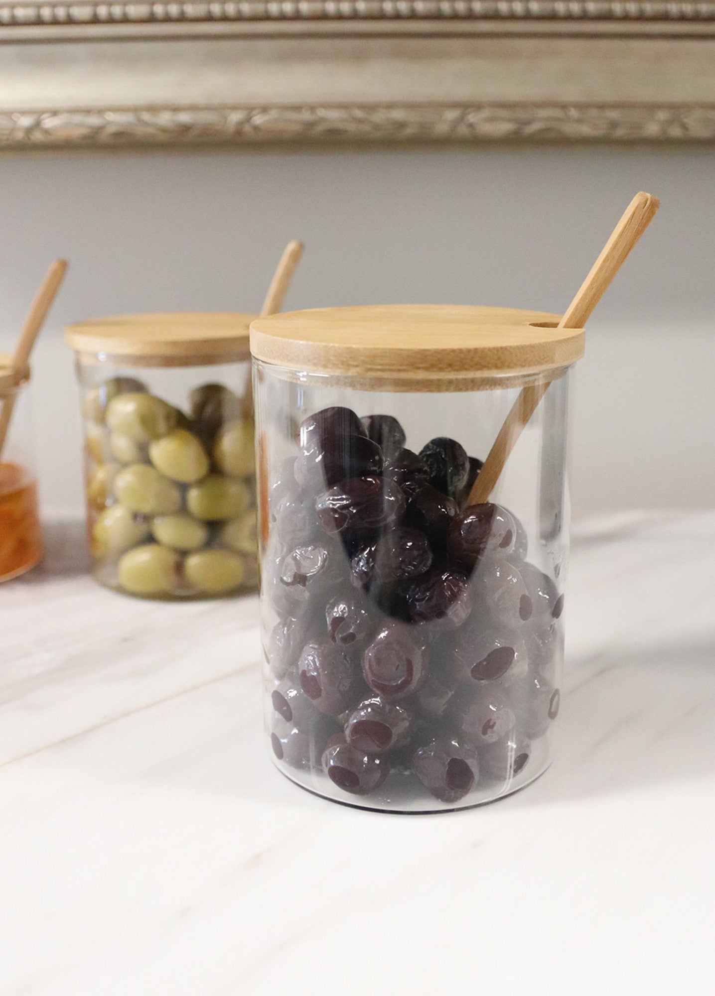 Apresentamos o nosso requintado frasco de vidro com tampa de bambu, uma adição obrigatória à sua coleção de cozinha ou decoração de casa. Esta peça deslumbrante foi concebida para evocar uma sensação de elegância e sofisticação, ao mesmo tempo que proporciona praticidade e funcionalidade.